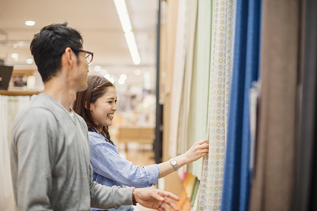 サンプル生地が届いたら、素材・色を確認しましょう。写真の色と実際の色が違ったということはよくあります。購入後のイメージ違いを避けるためにも、色の確認はできるだけ昼の自然光の元で行いましょう。新築の場合は事前に床材や壁紙の一部を取り寄せておいて、色味が合うかどうか確認することも重要です。