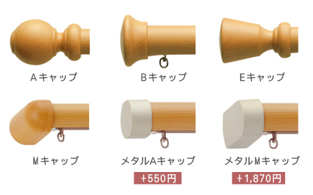 6種類のキャップからお選びいただけます。おしゃれな形状のものから リターン金具を取り付けられるものまでご希望に合わせてお選びいただけます。