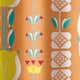 一見幾何柄にも見えるくらい簡略化されたチューリップや花のモチーフがユニークで、お部屋をおしゃれに彩ります。