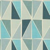 彩度を落としたブルーの配色による幾何柄は落ち着きがあり、クールで洗練された印象を与えるデザインです。