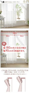 こちらの商品は右1枚+左1枚の 2枚で1セットでお届けします。 注文幅に対して半分のサイズの左右のカーテンが1枚づつ届きます。