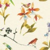 小鳥とランを水彩画風に仕上げたプリントボイルレースカーテン オルキデ(L-1296)生地サンプル