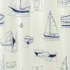 白地にブルーで線描きされたヨットの設計図柄がモダンで爽やかな、3級遮光ドレープカーテンです。