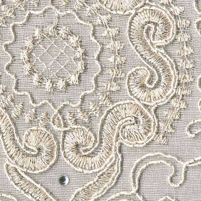 シャンパンゴールドのような刺繍糸と輝くスパンコールが豪華な雰囲気を演出します。