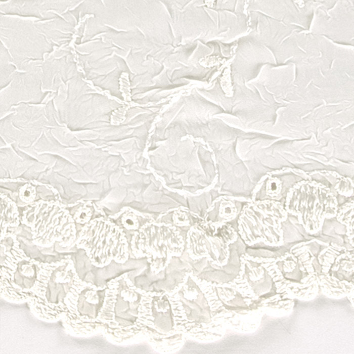 クラッシュ加工を施した生地に、繊細な刺繍が美しく浮かび上がります。柔らかくさらりとした質感の生地です。