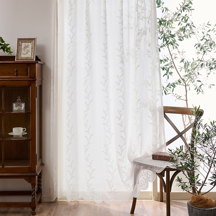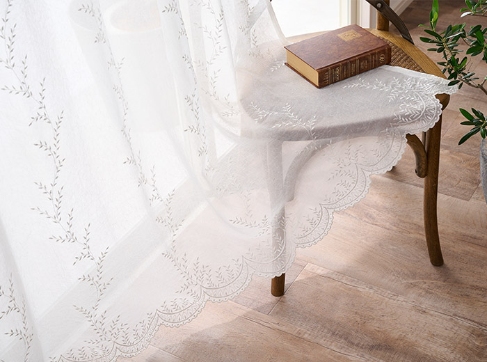 幅の継ぎ目が出ないシームレスカーテンですので美しい刺繍を存分に楽しめます。