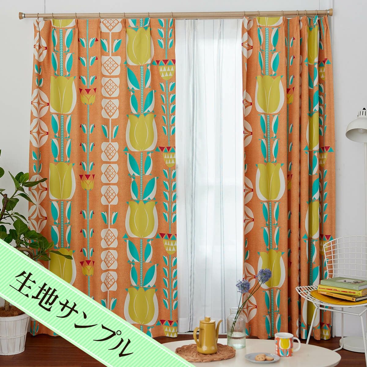 可愛らしいチューリップや花柄が魅力の3級遮光カーテン チューリップ(D-1196) 生地サンプル
