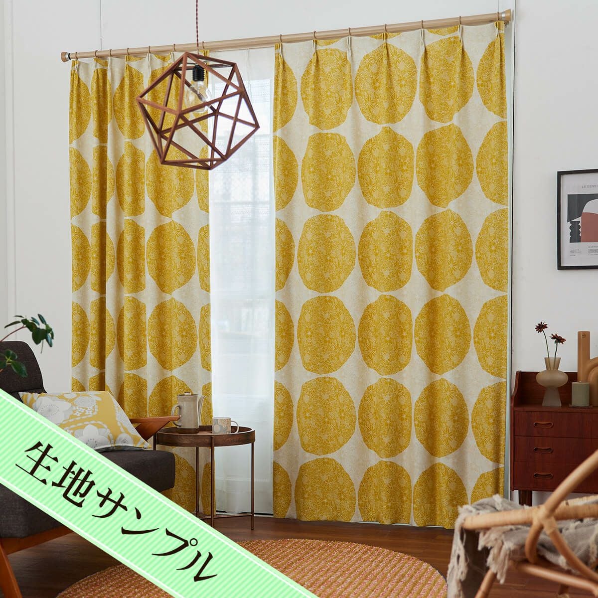 水彩タッチのミモザが優しく彩る完全1級遮光カーテン ミモザ(D-1160) 生地サンプル