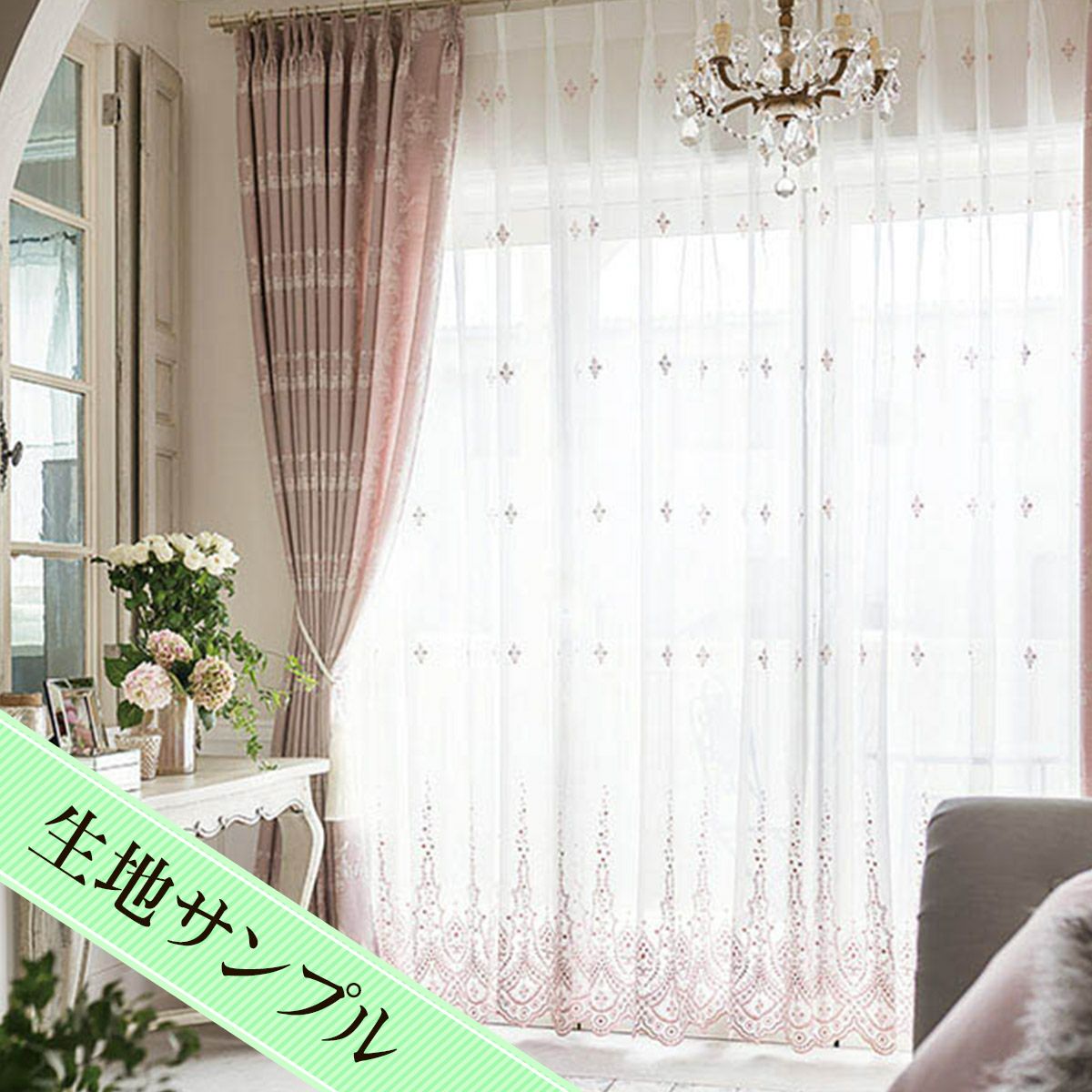 くすみピンクのオーナメント柄刺繍と裾スカラップが大人フェミニンで甘すぎないおしゃれなトルコ刺繍レースカーテン フィオレット(L-8203)生地サンプル