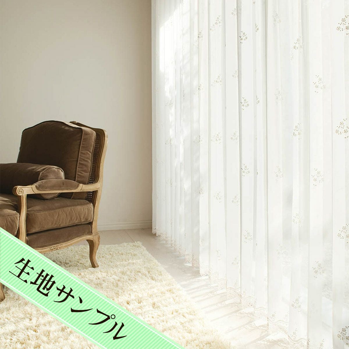 上品な小花と唐草の刺繍が美しいトルコ刺繍レースカーテン