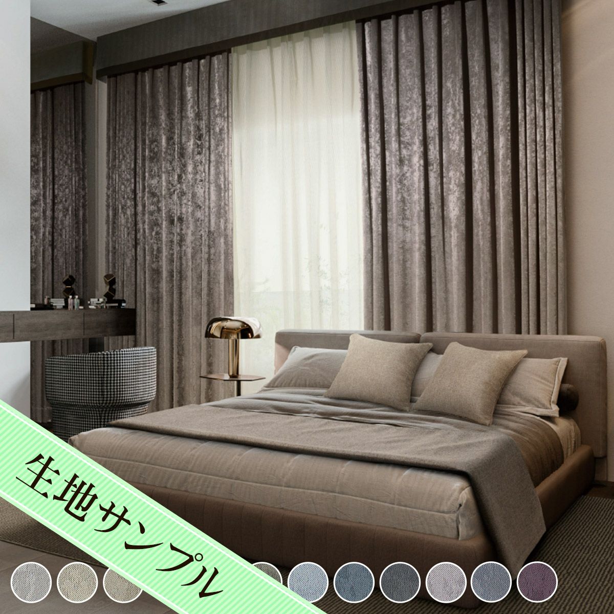 8色 手触りの良いスウェード調の1・2級遮光防炎カーテン