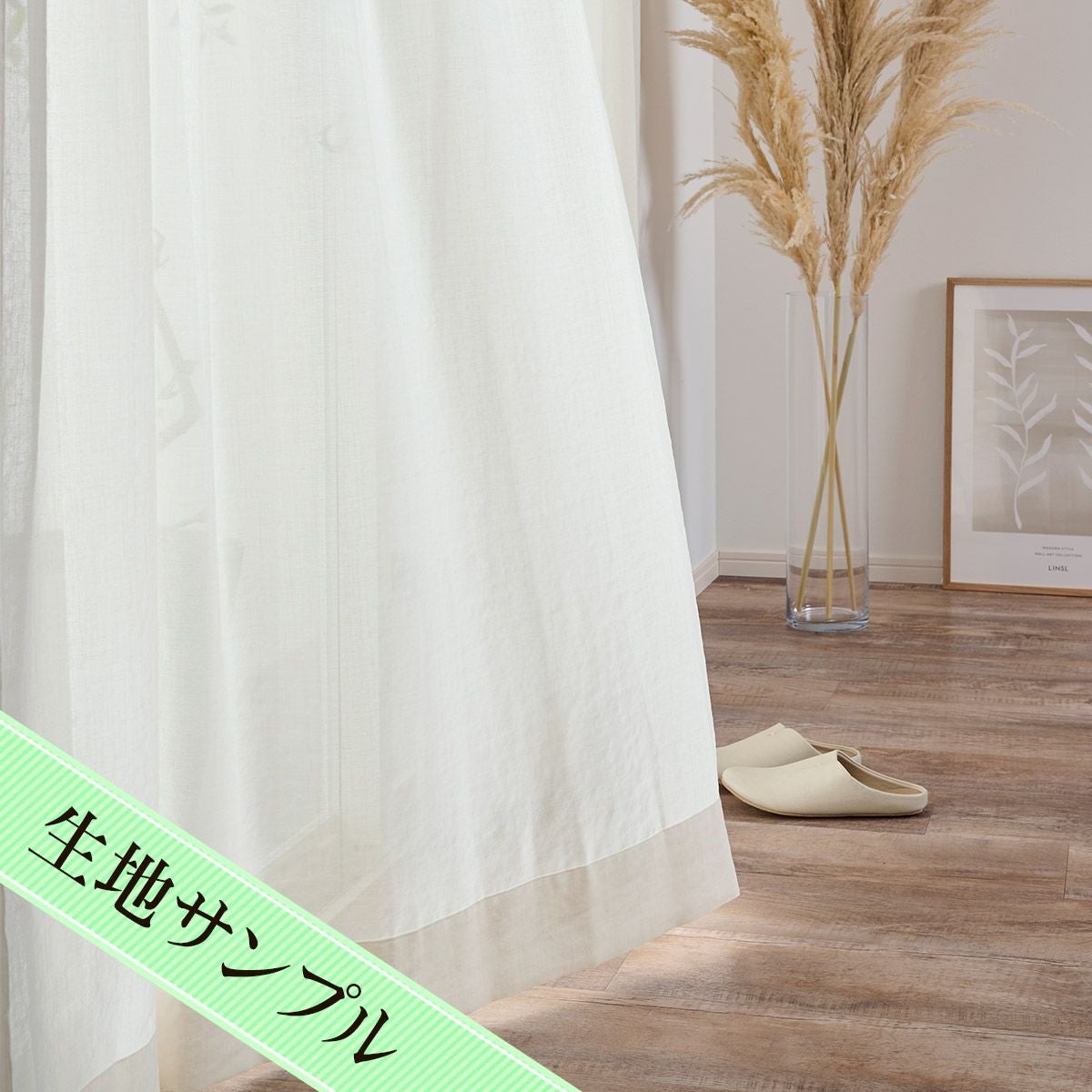 リネン85%ナチュラルなインテリアに合う大きな窓でも美しいシームレスレースカーテン
