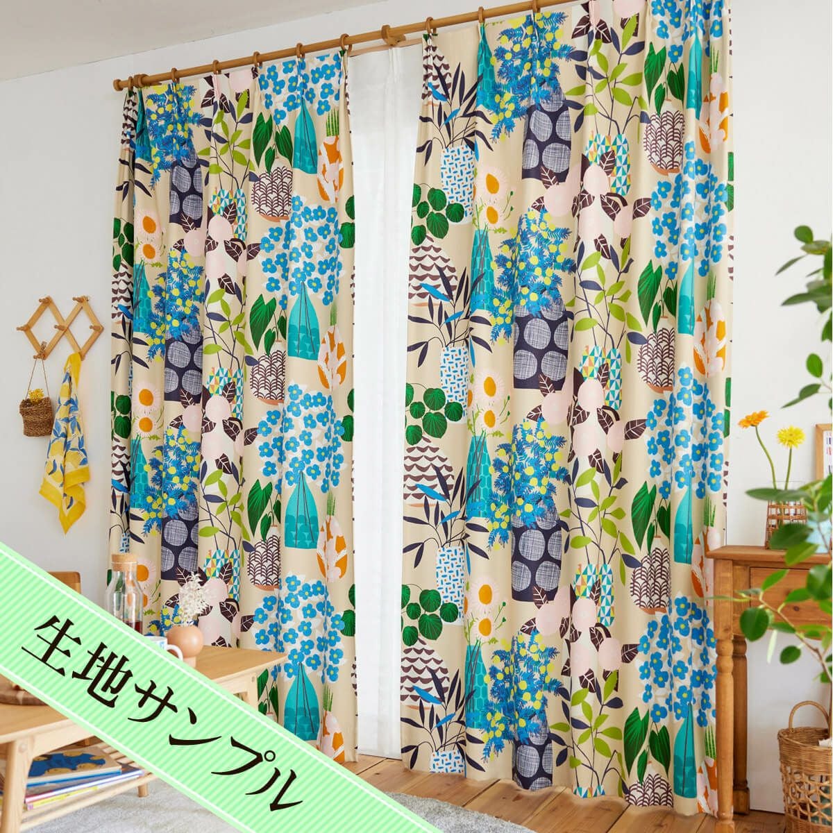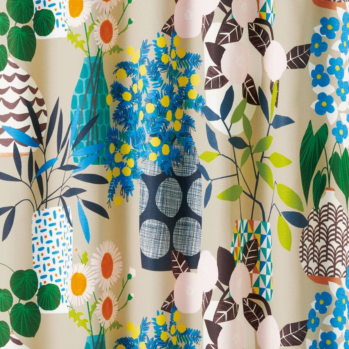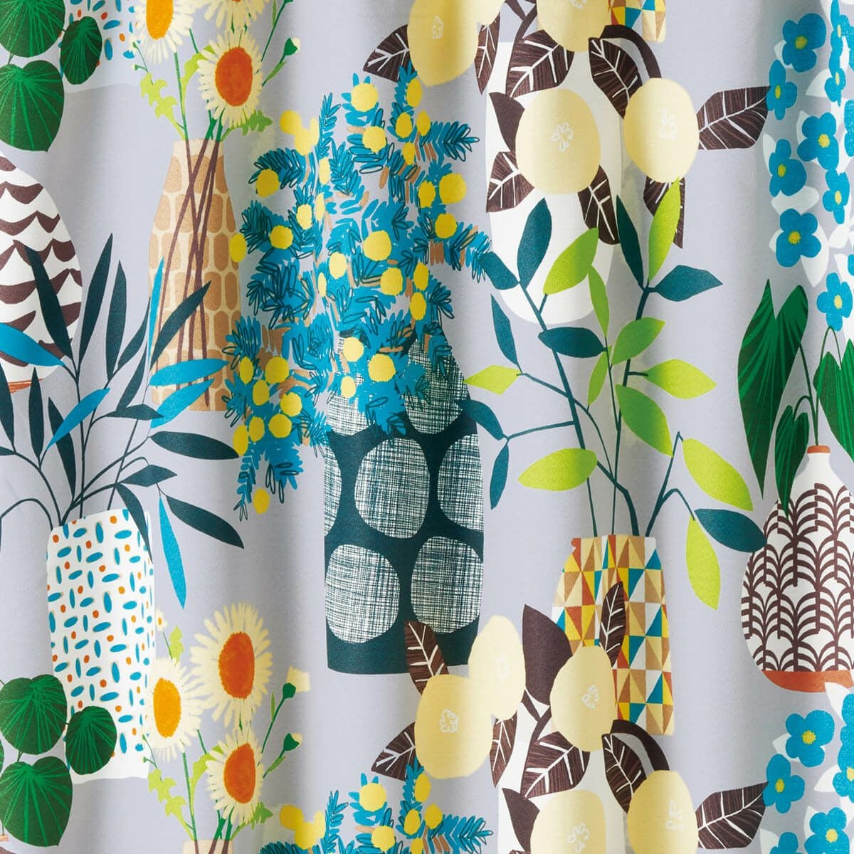 インパクトのある北欧風フラワーポット柄の2~3級遮光カーテン ボタニック(D-1196)生地サンプル