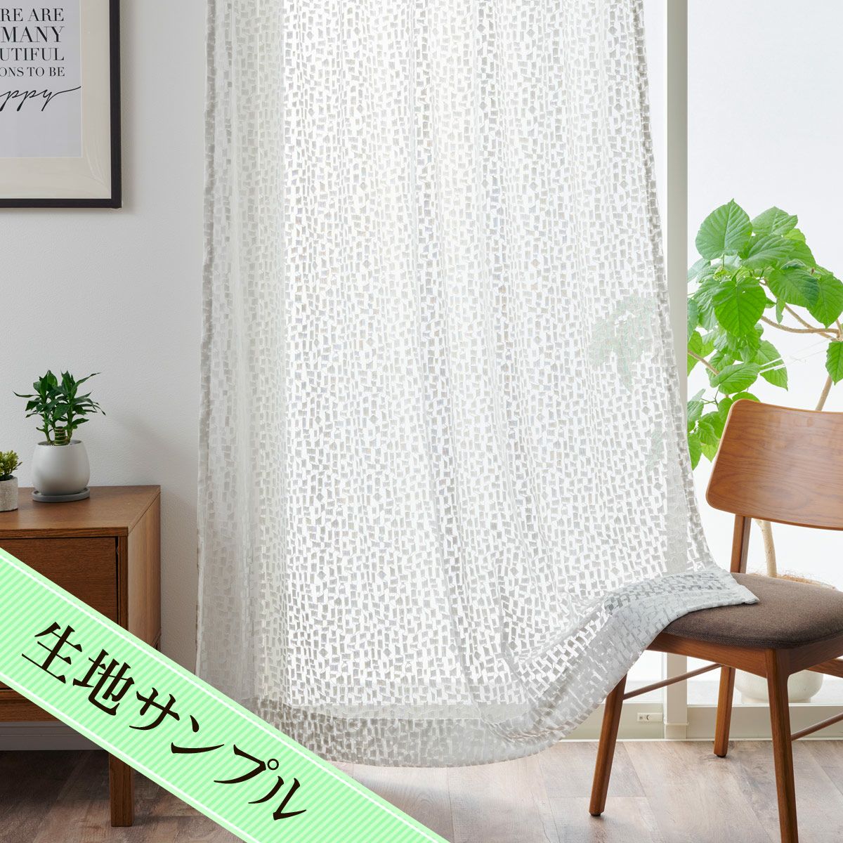上下に流れるランダムなスクエア柄が美しいレースカーテン リピン(L-1295) 生地サンプル