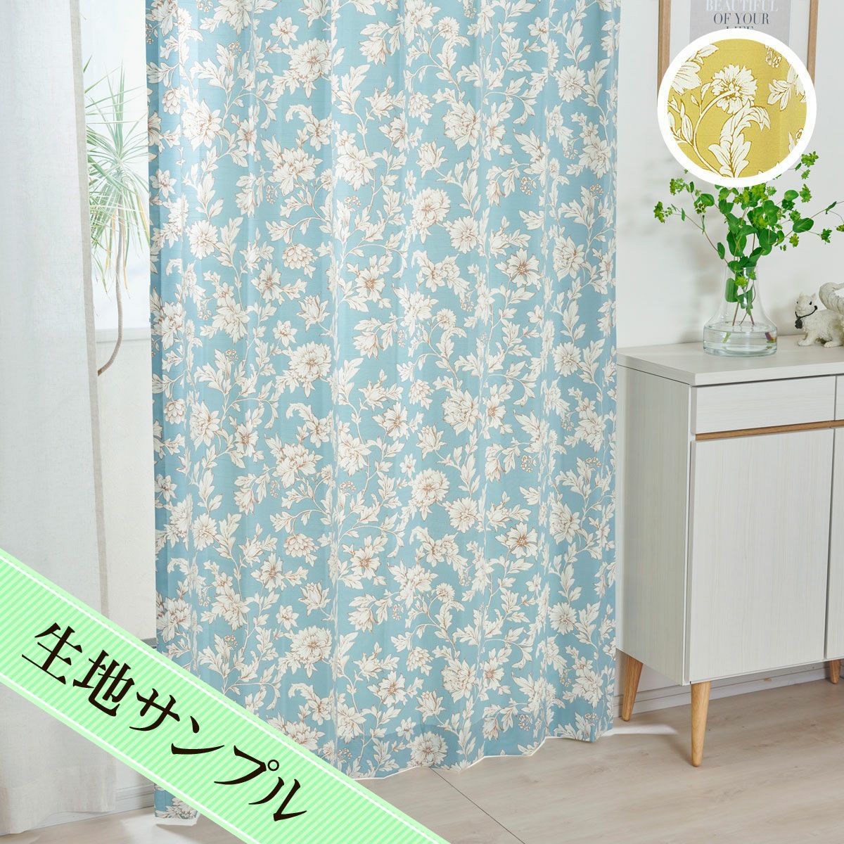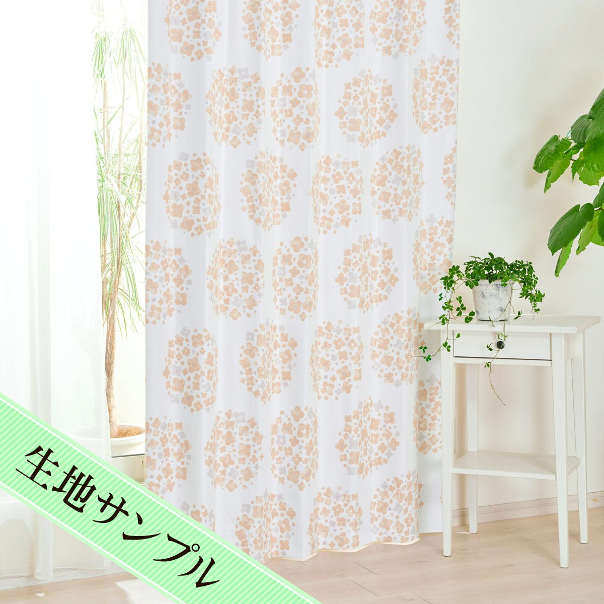 遮光率100%明るい花柄が魅力の完全遮光カーテン アナベル(D-1141)生地サンプル