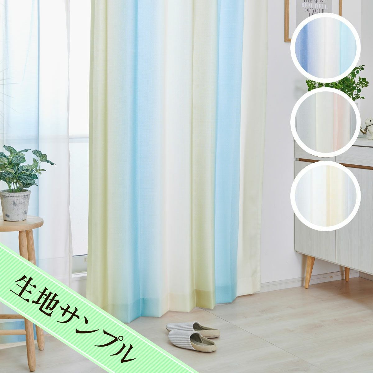 淡い色彩のグラデーションが柔らかな雰囲気を醸し出すカーテン オーロラ(D-1197)生地サンプル