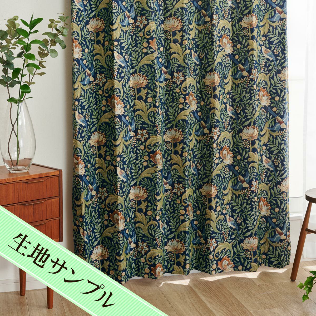レトロな色合いにクラシックな花柄プリントが映えるカーテン パルテ(D-1193)生地サンプル