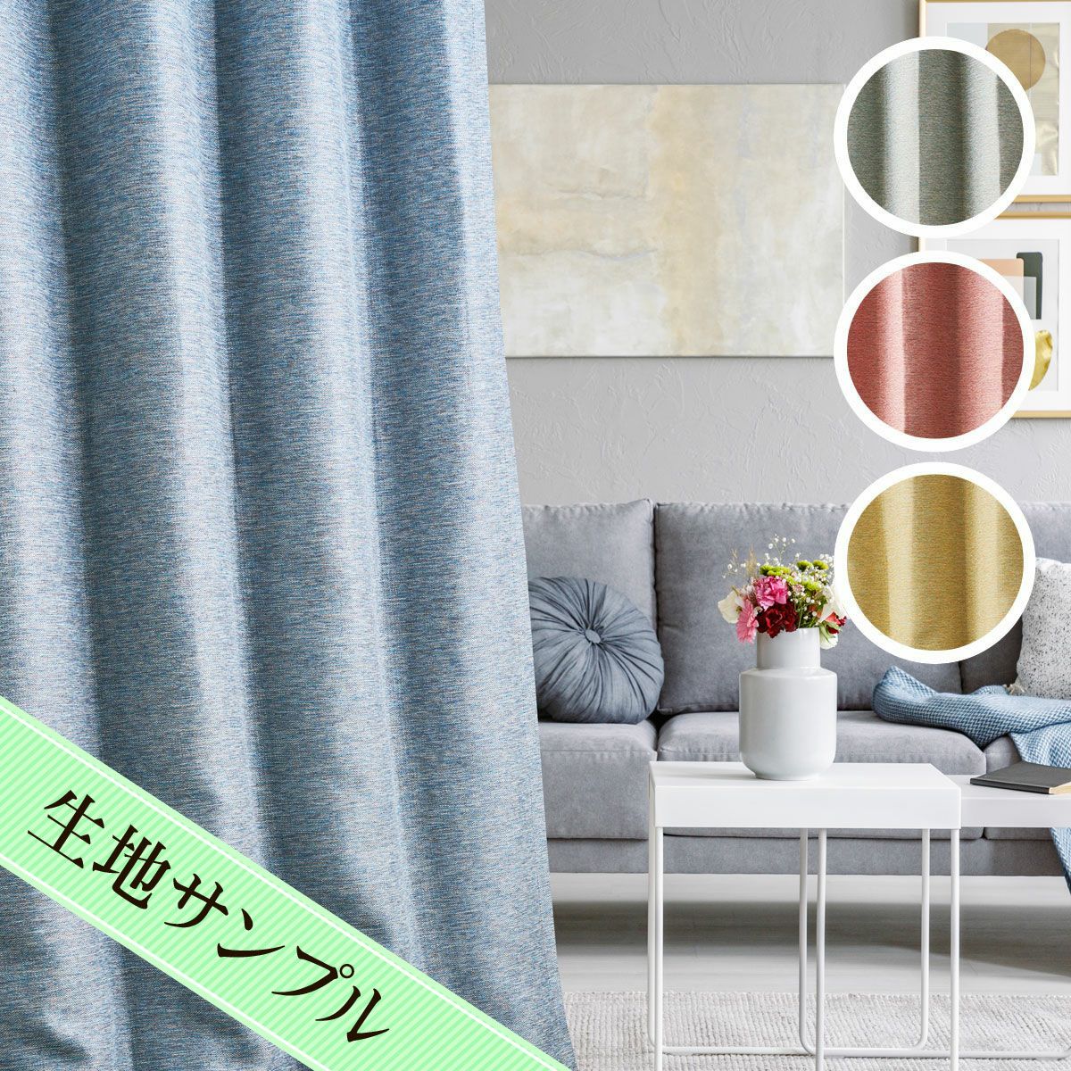 カーテン購入で失敗しないためにはカーテン生地の素材感や色合いを事前に確認することが重要です。 お手元に届いた際の商品のイメージ違いをできる限りなくすためにも生地サンプルのご請求をおすすめいたします。