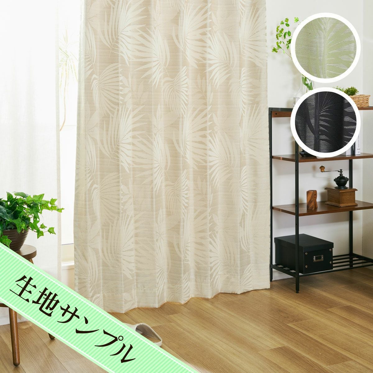 水彩タッチのリーフ柄に癒される完全1級遮光カーテン