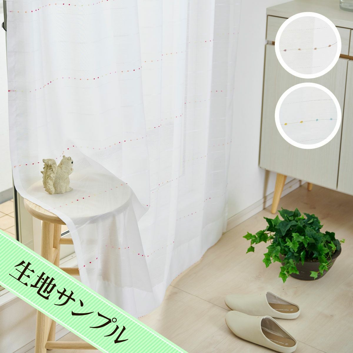 モールのドットがリズミカルに並ぶかわいい遮熱・防炎レースカーテン ドーラ2(L-8202)生地サンプル