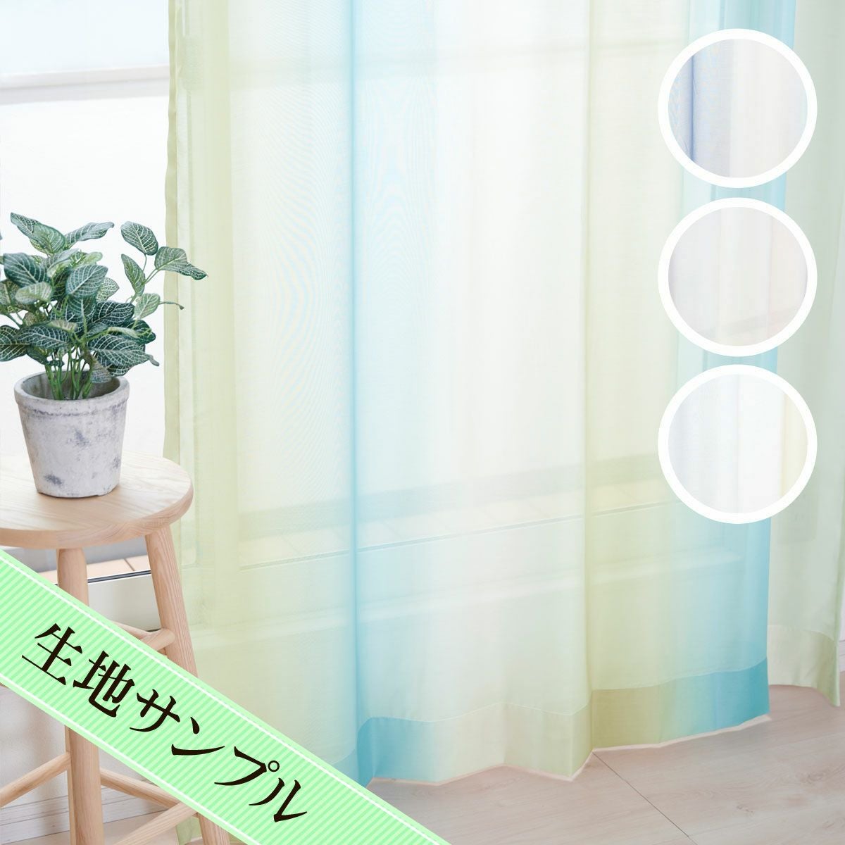優しい色合いのグラデーションに癒されるレースカーテン オーロラボイル(L-1297)生地サンプル