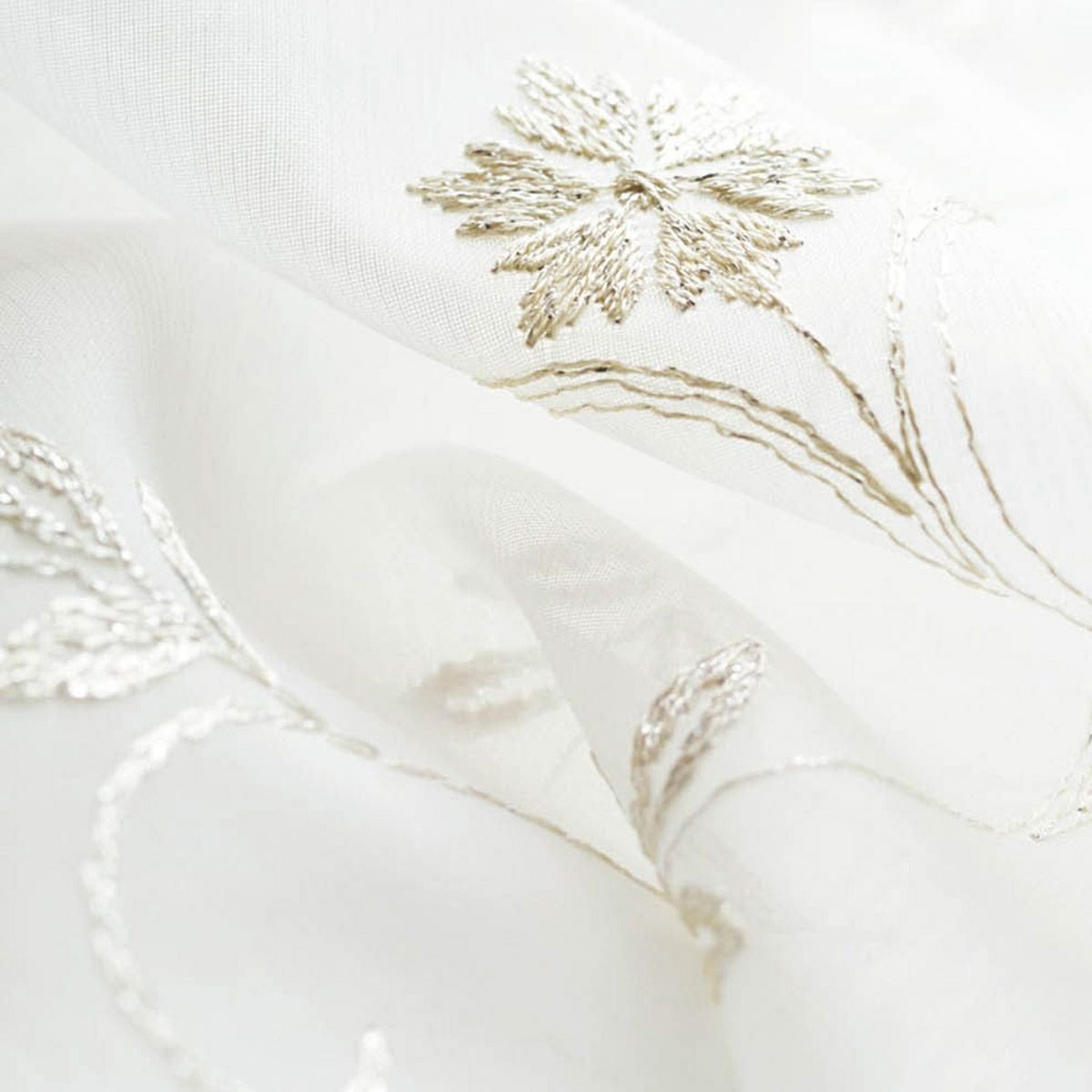 きらきらと咲き誇る草花の上品な刺繍が美しいボイルレースカーテン フィリス(L-1296)