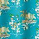 背景色のブルーに入った濃淡が、プリント生地にありがちな平坦さを感じさせません。カラフルなデザインが映える発色の良いプリント。