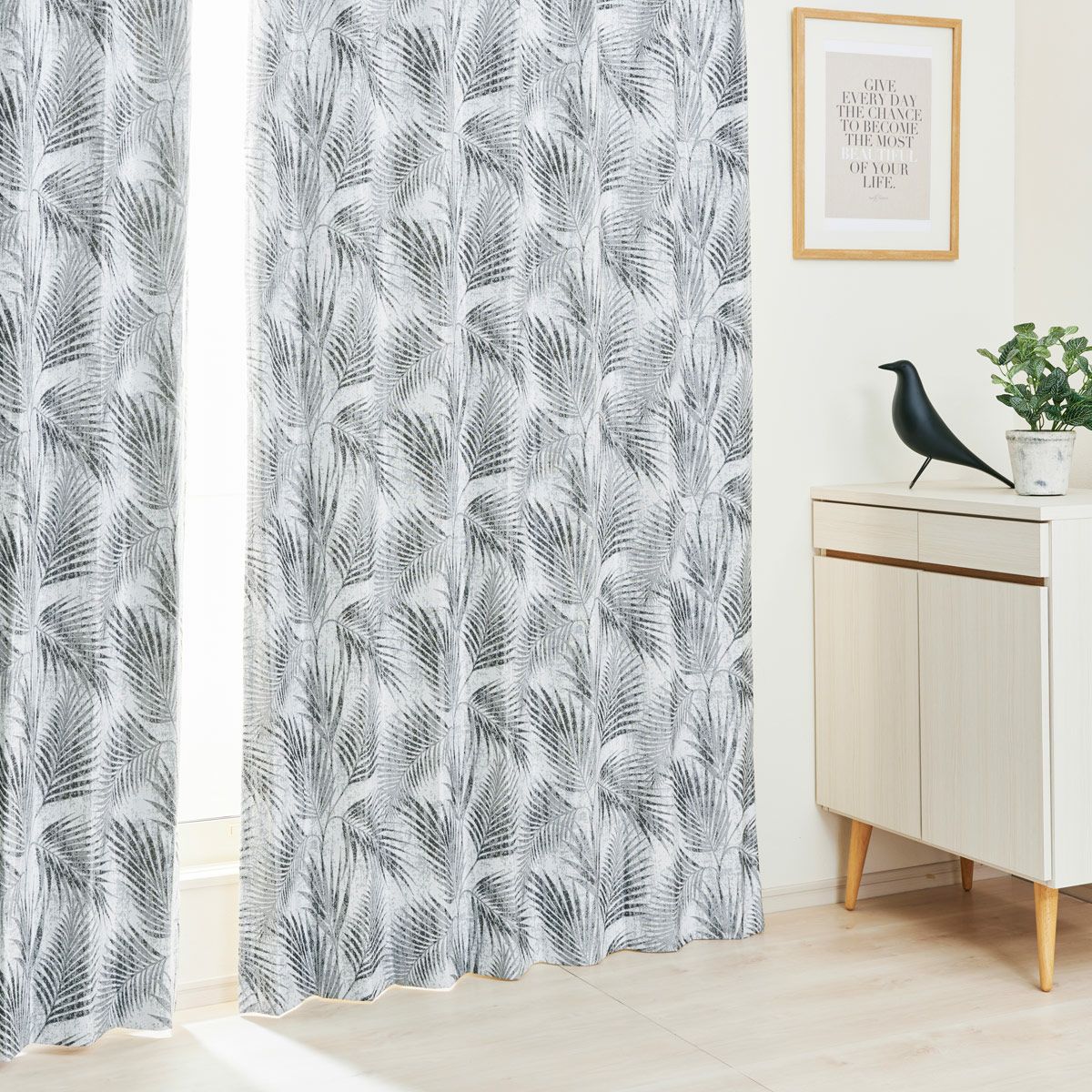 水彩タッチのリーフ柄に癒される完全1級遮光カーテン