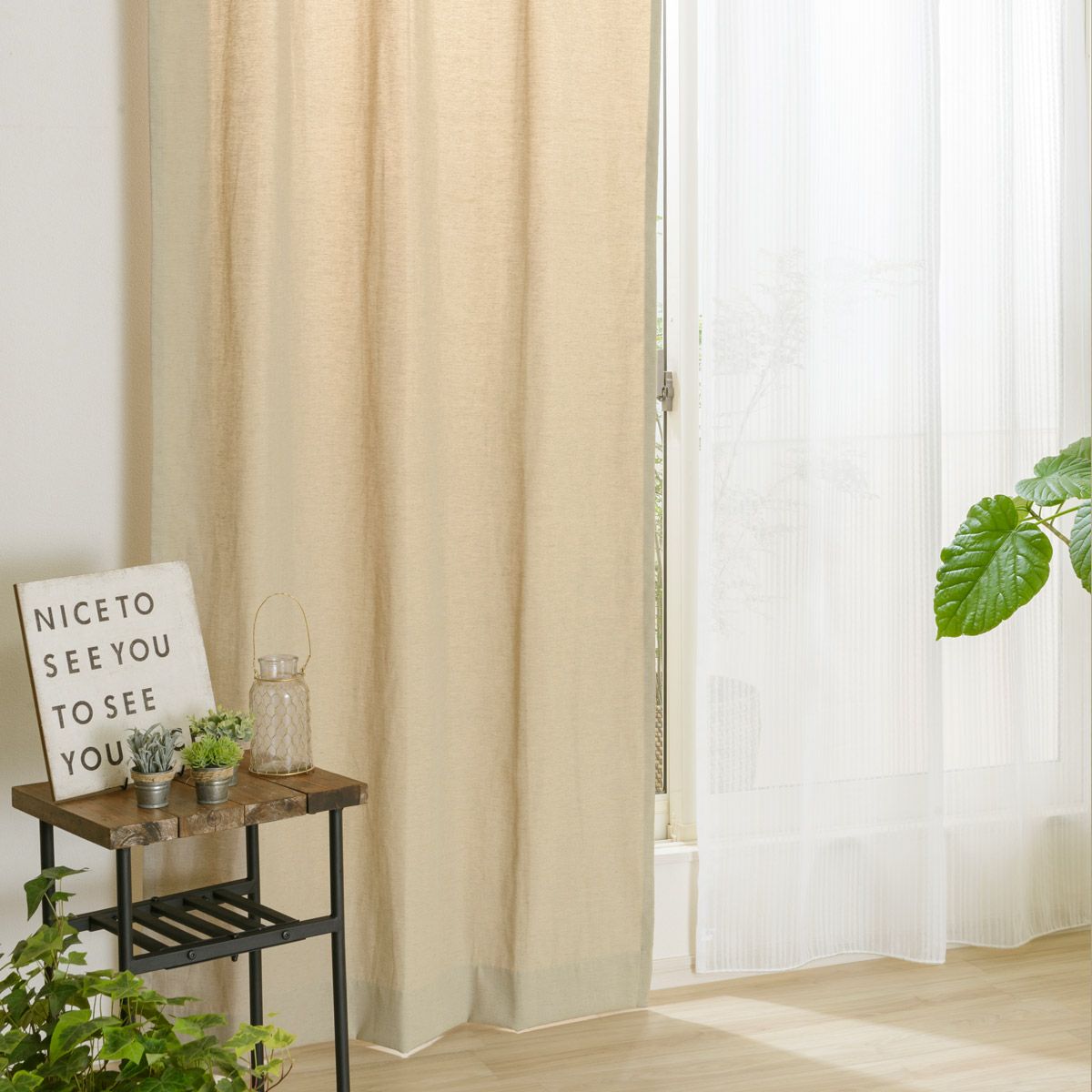 リネン85%ナチュラルなインテリアに合う大きな窓でも美しいシームレスレースカーテン