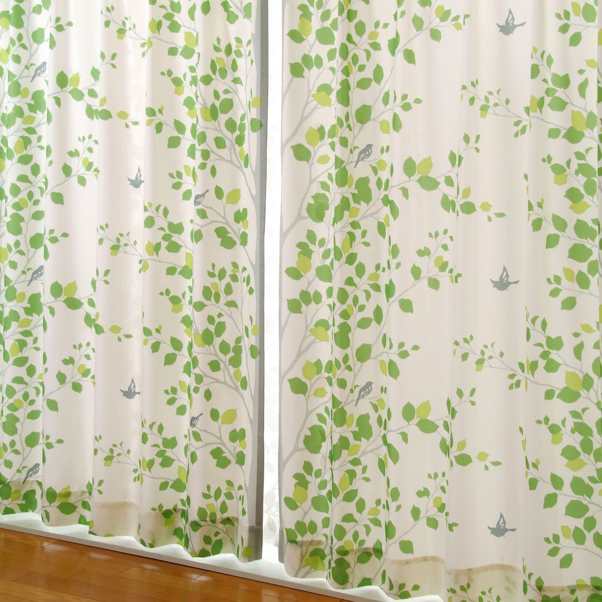 水彩タッチのリーフ柄に癒される完全1級遮光カーテン