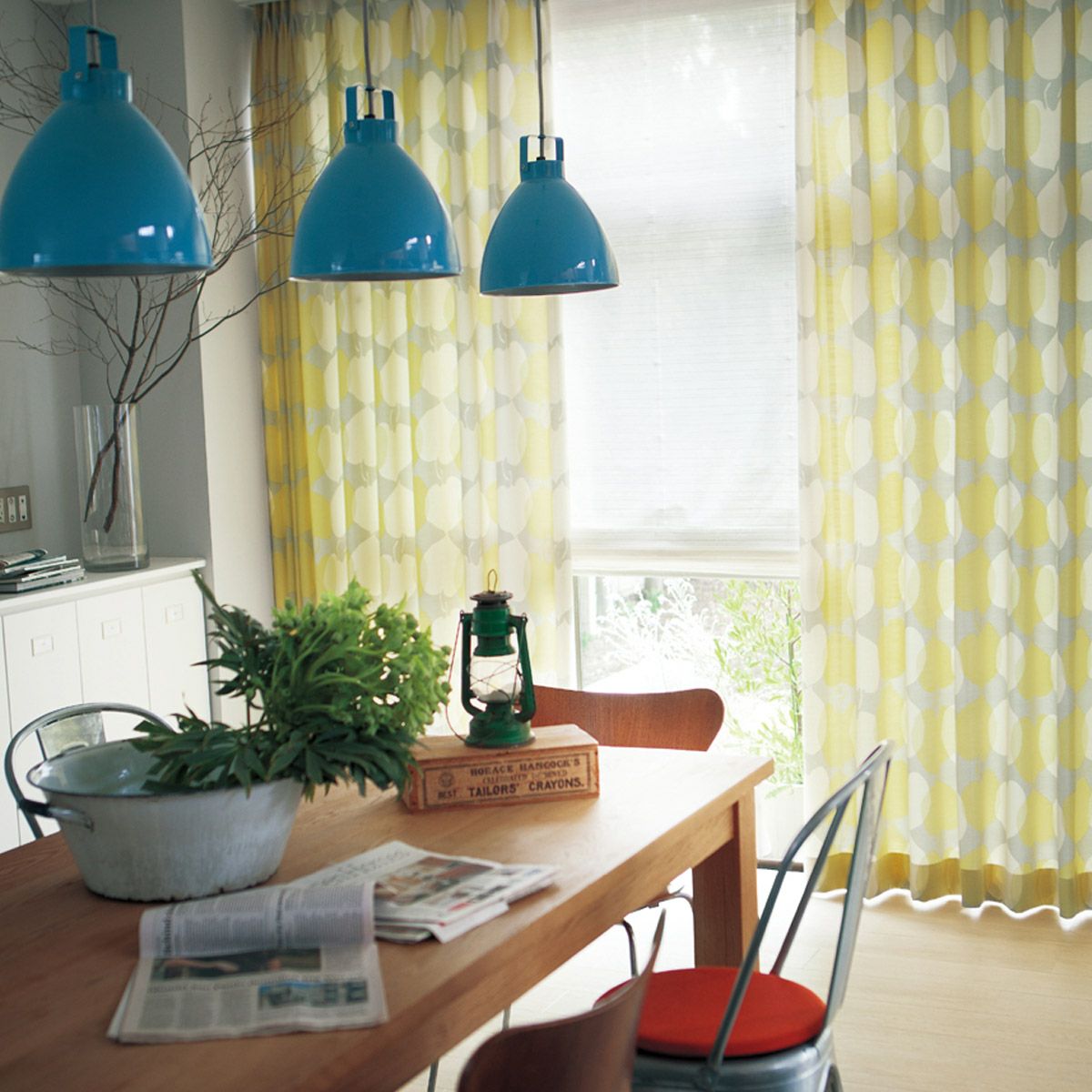 他の家具との組み合わせが難しそうで、子供部屋以外では使いにくそうと感じていらっしゃるお客様が多いのですが、実は家具や小物とのバランス次第で大人の遊び心のある空間にできる、個性的なインテリアにおすすめのカーテンです。