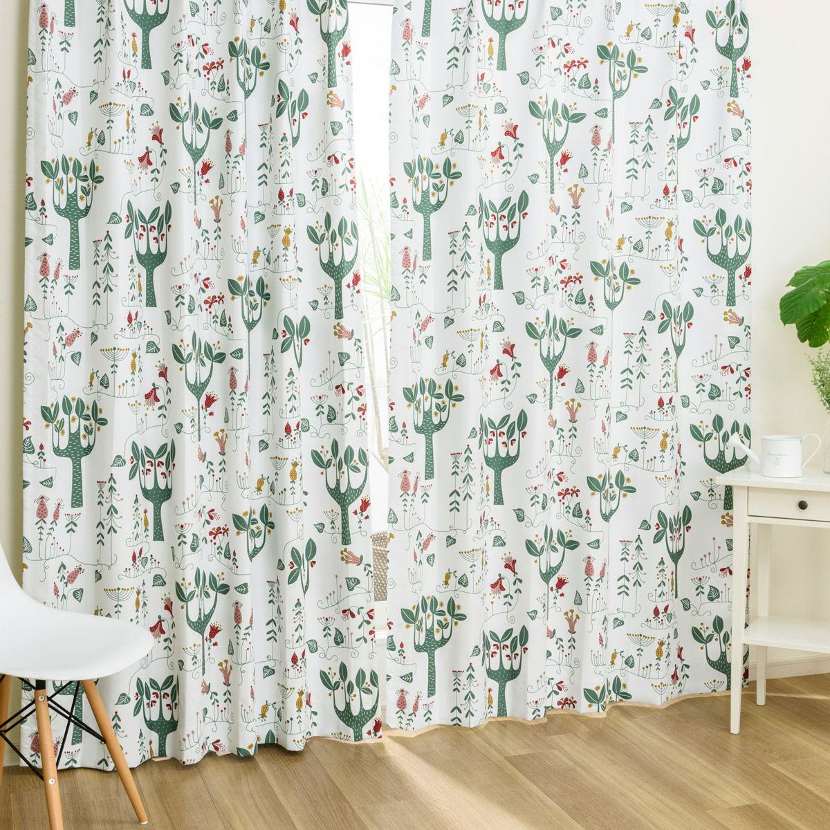 北欧ナチュラルな花と動物のモチーフがおしゃれな1・2級遮光カーテン