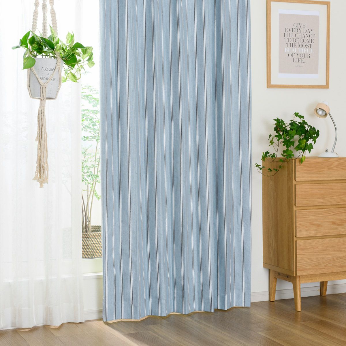 ブルーのカーテンは色の濃淡差、素材感、光沢感の有無など、生地の特徴の違いでカジュアルにもモダンにもエレガントにもコーディネートできます。さまざまな雰囲気のお部屋に合わせられる万能カラーです。