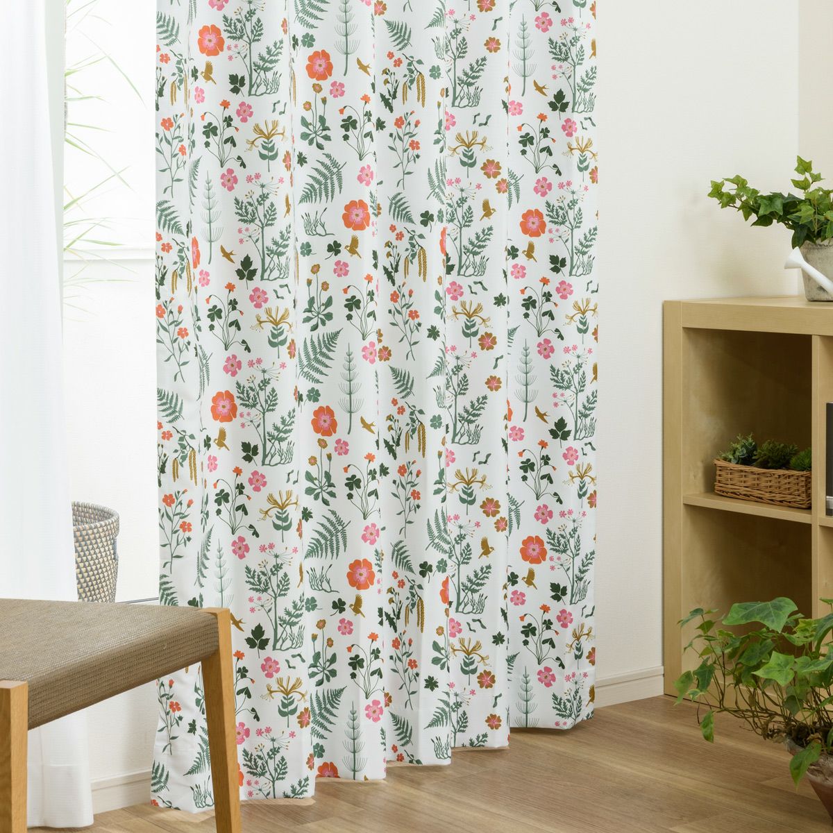 北欧テイストのラフな花柄が魅力の1・2級遮光カーテン