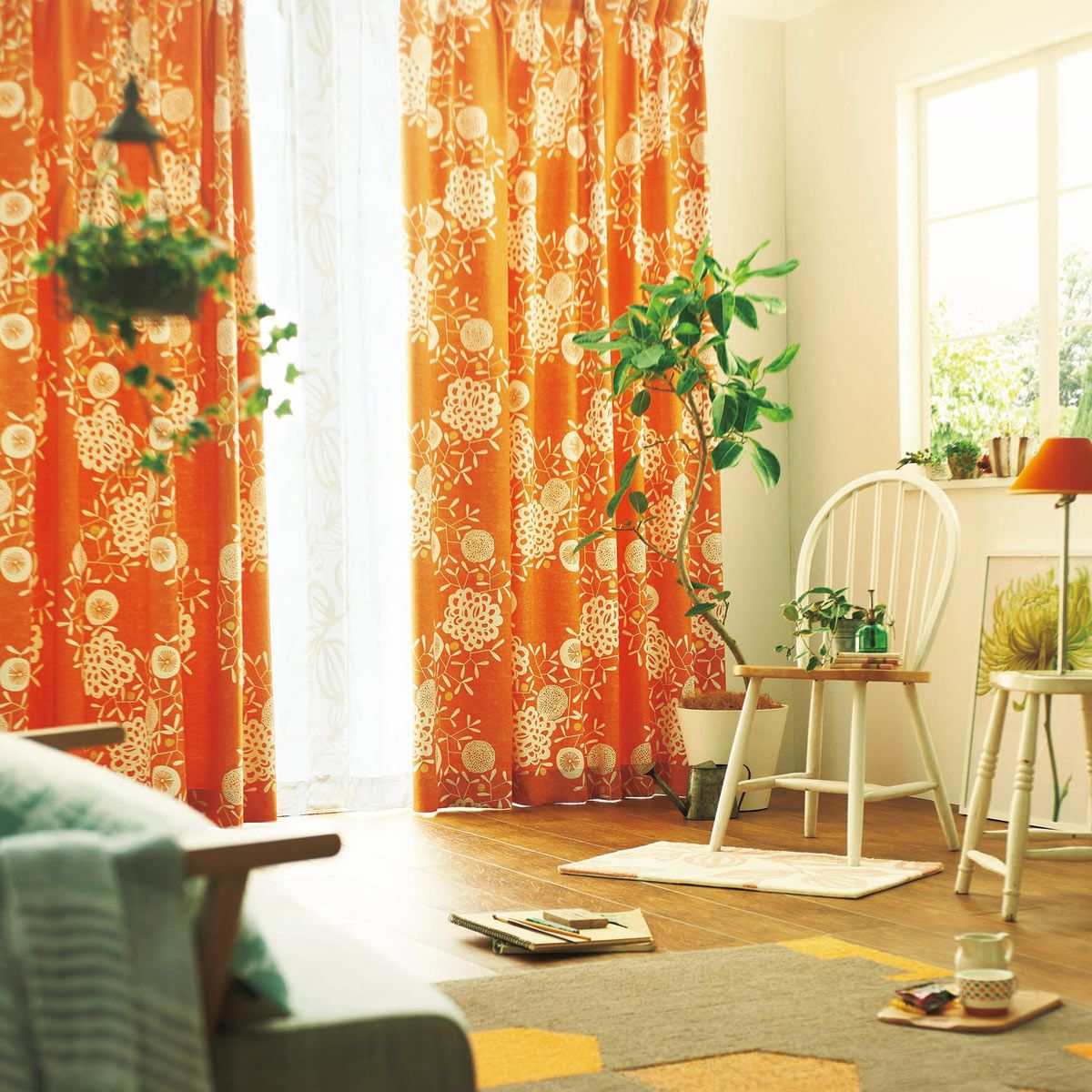 北欧テイストのラフな花柄が魅力の1・2級遮光カーテン