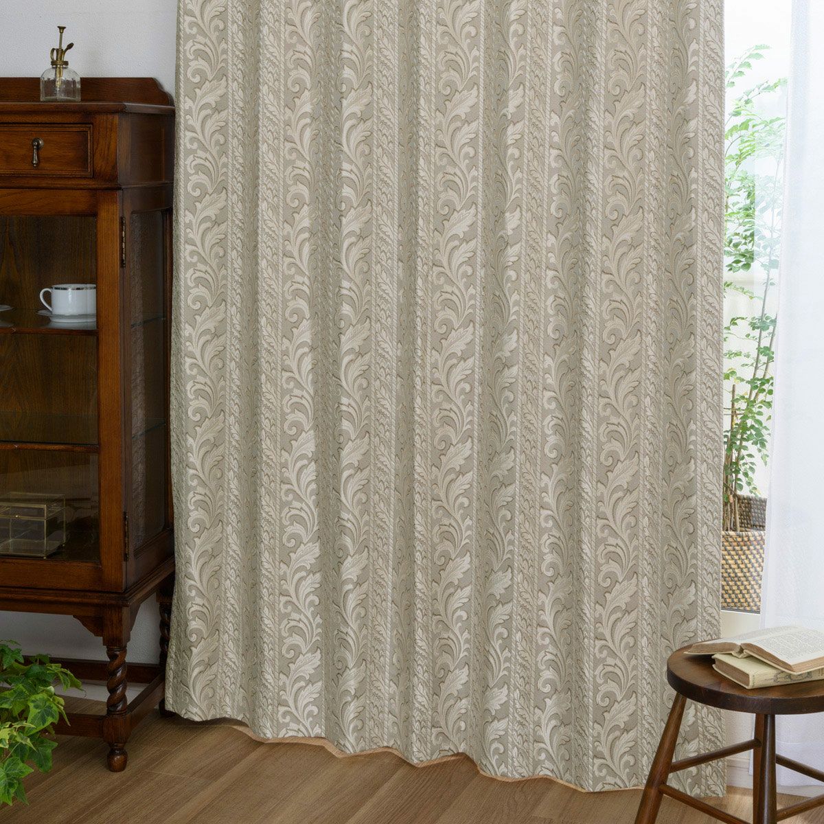 やさしい色合いと上品なリーフ柄の1級遮光カーテン