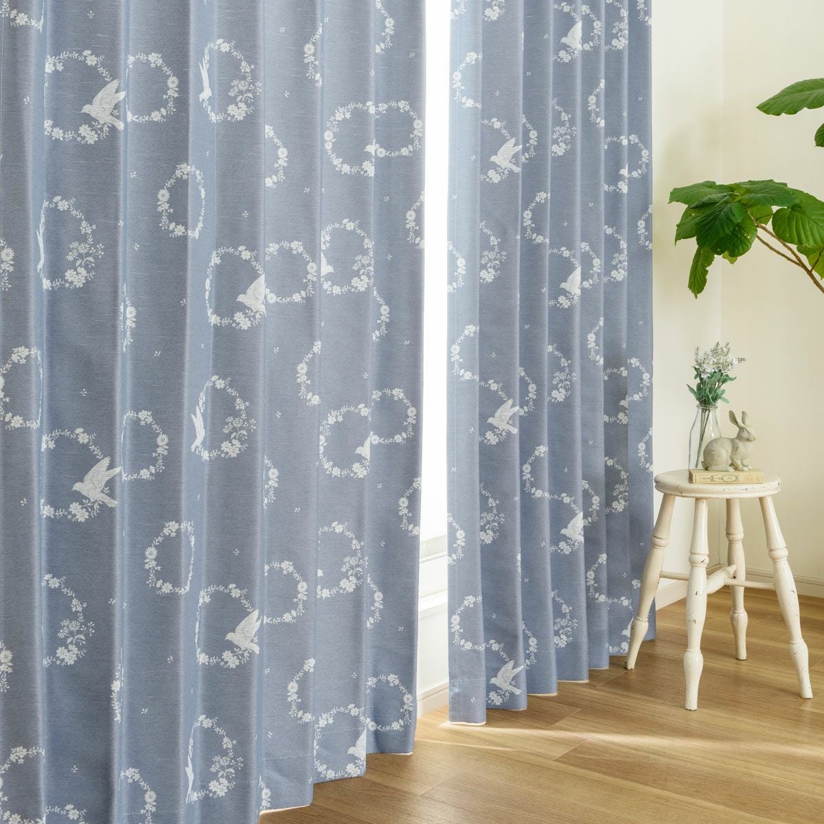 優しい色合いのジャガード織の花柄が美しい裏地付き1級遮光カーテン ルイーズ(D-1148)