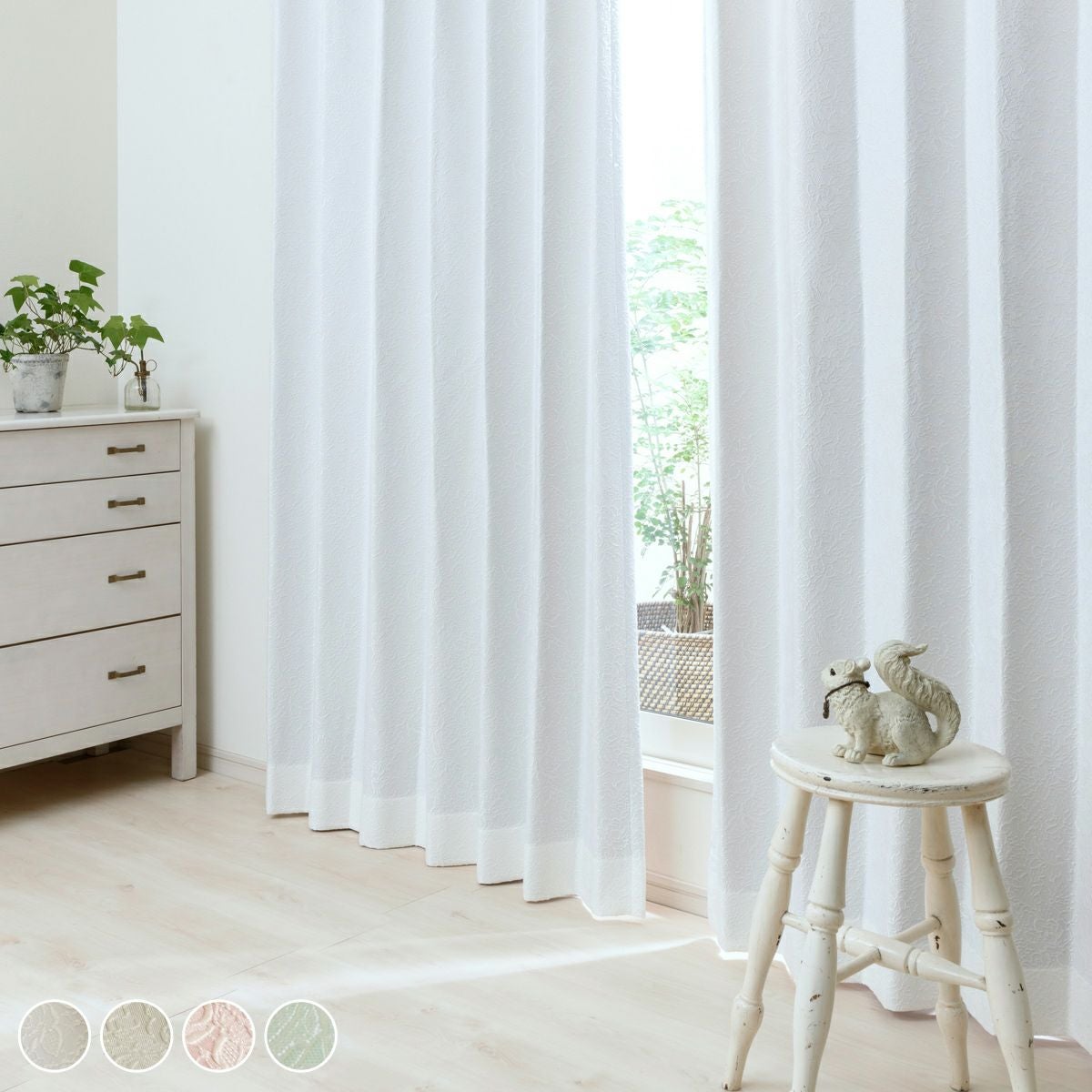 ガーゼのような柔らかいキルト生地にダマスク柄のステッチを施したシームレスカーテン レヴィア(D-1190)