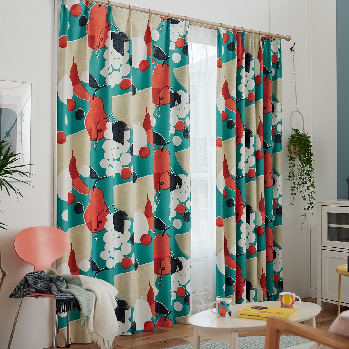 北欧テイストの洋梨柄をやさしい色合いで描いた2・3級遮光カーテン