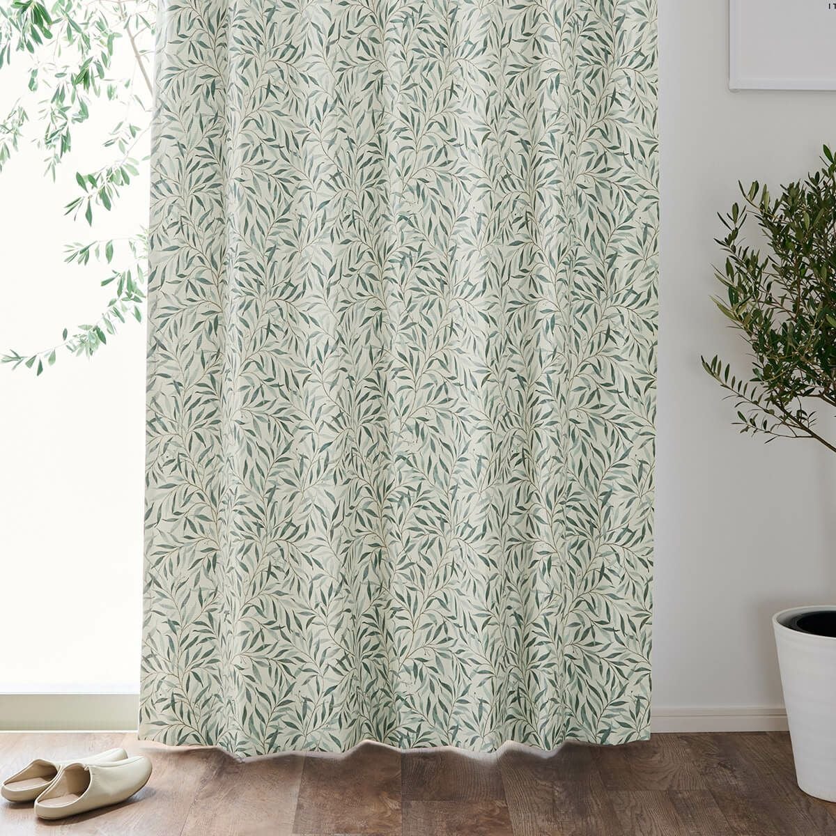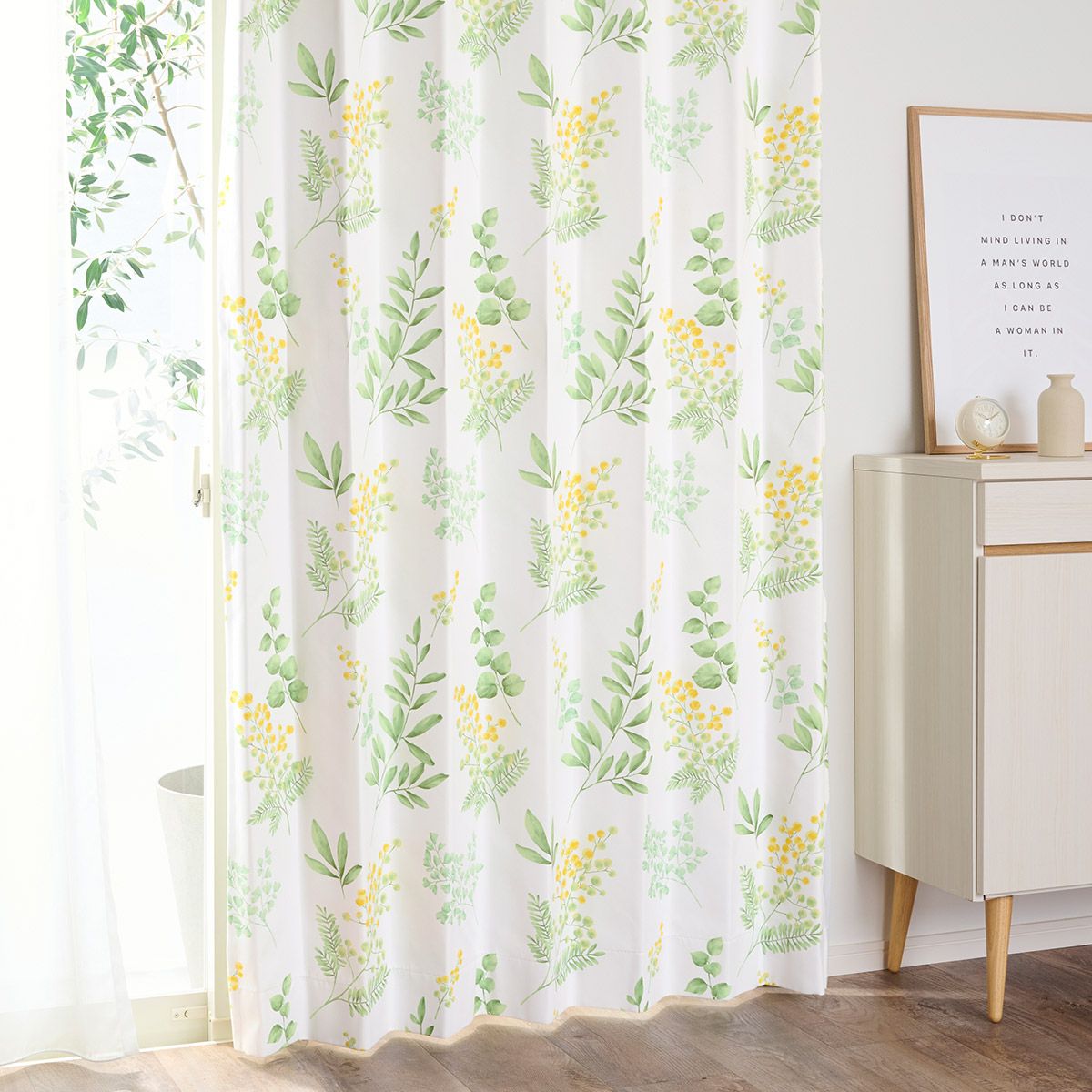 水彩タッチのリーフ柄に癒される完全1級遮光カーテン