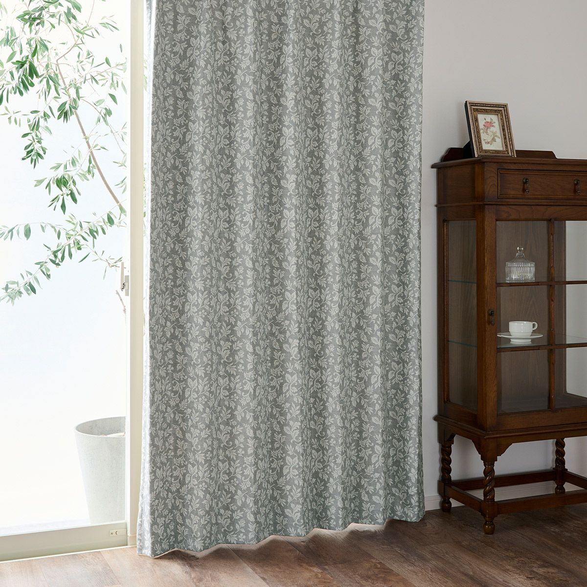 やさしい水彩タッチのリーフ柄に癒される完全1級遮光カーテン レイジー(D-1163)