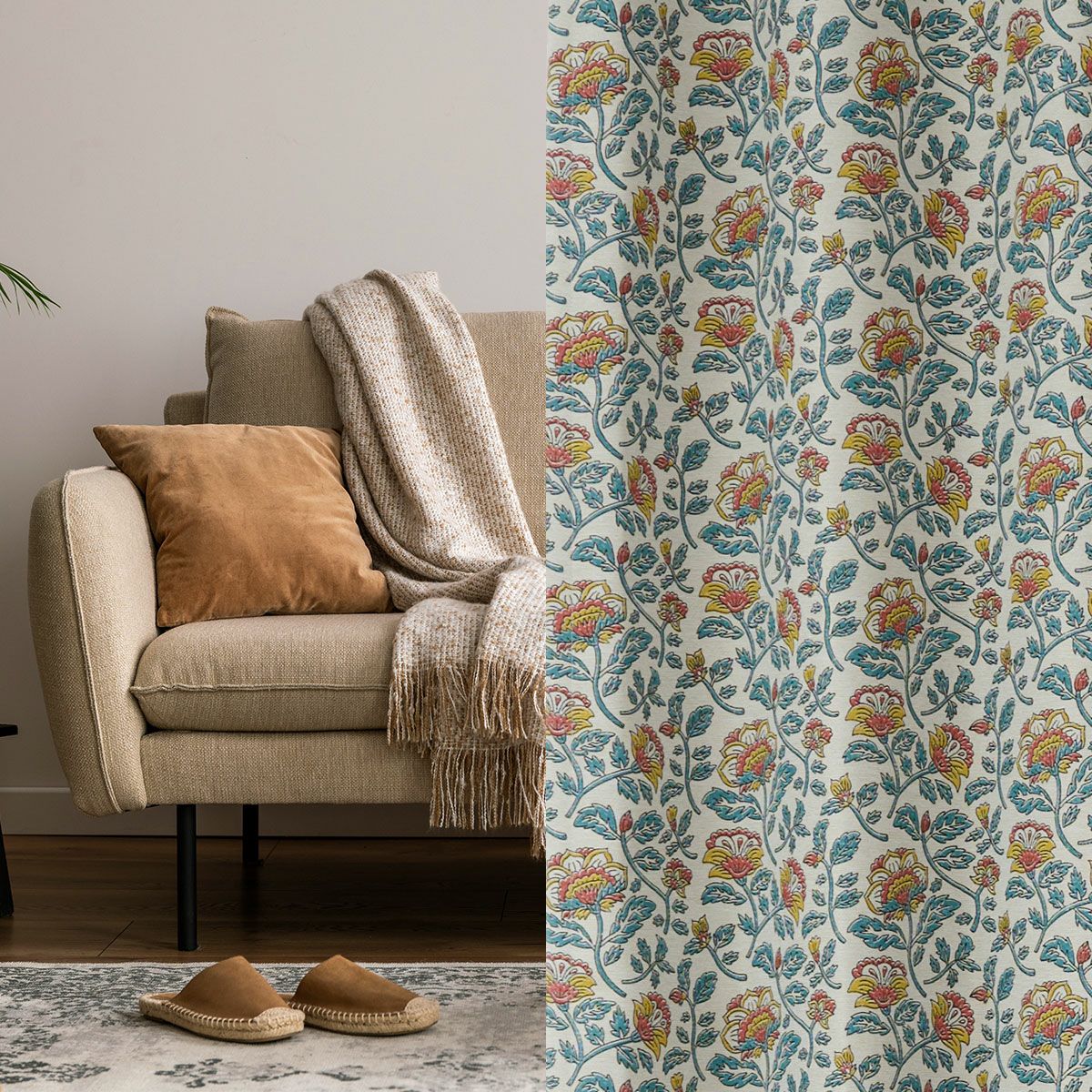北欧テイストのラフな花柄が魅力の1・2級遮光カーテン