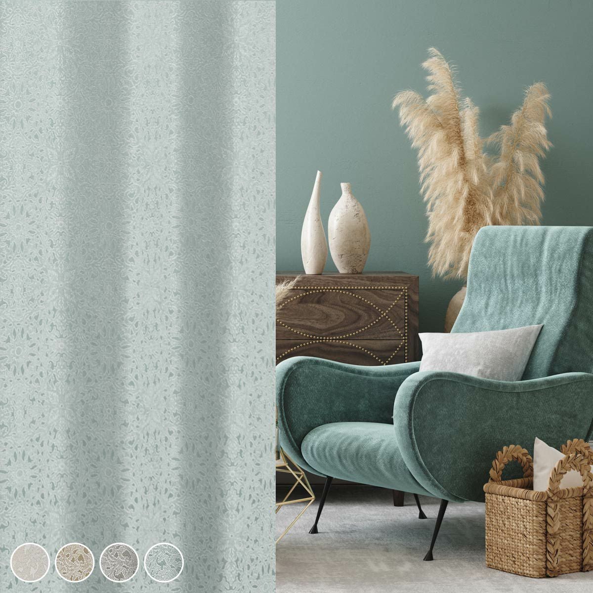 4色 ホテルライクなお部屋にダマスク柄がおしゃれなシームレス完全遮光カーテン