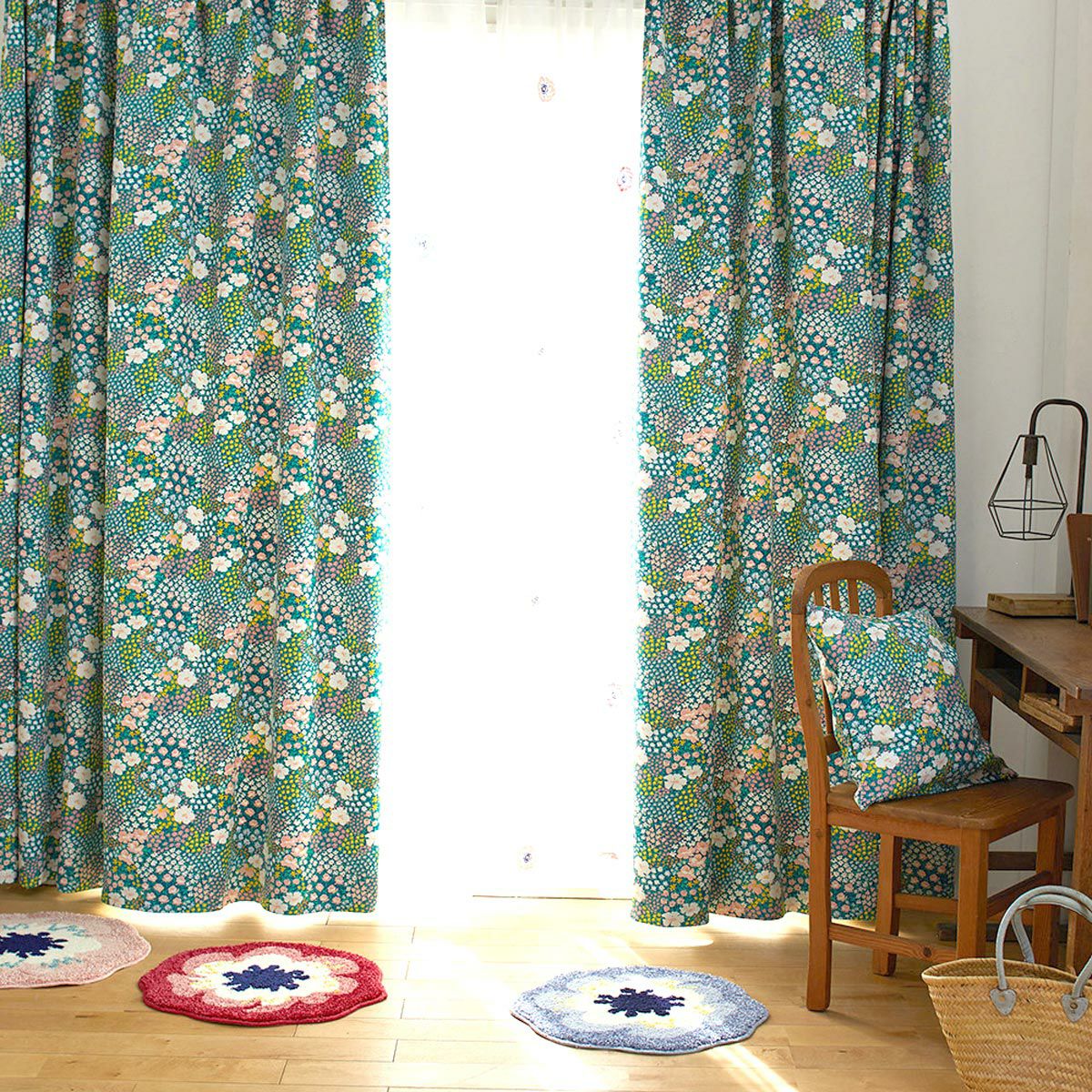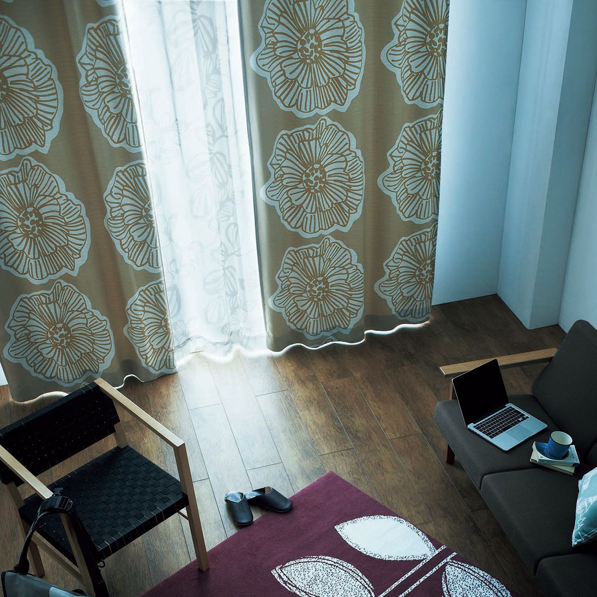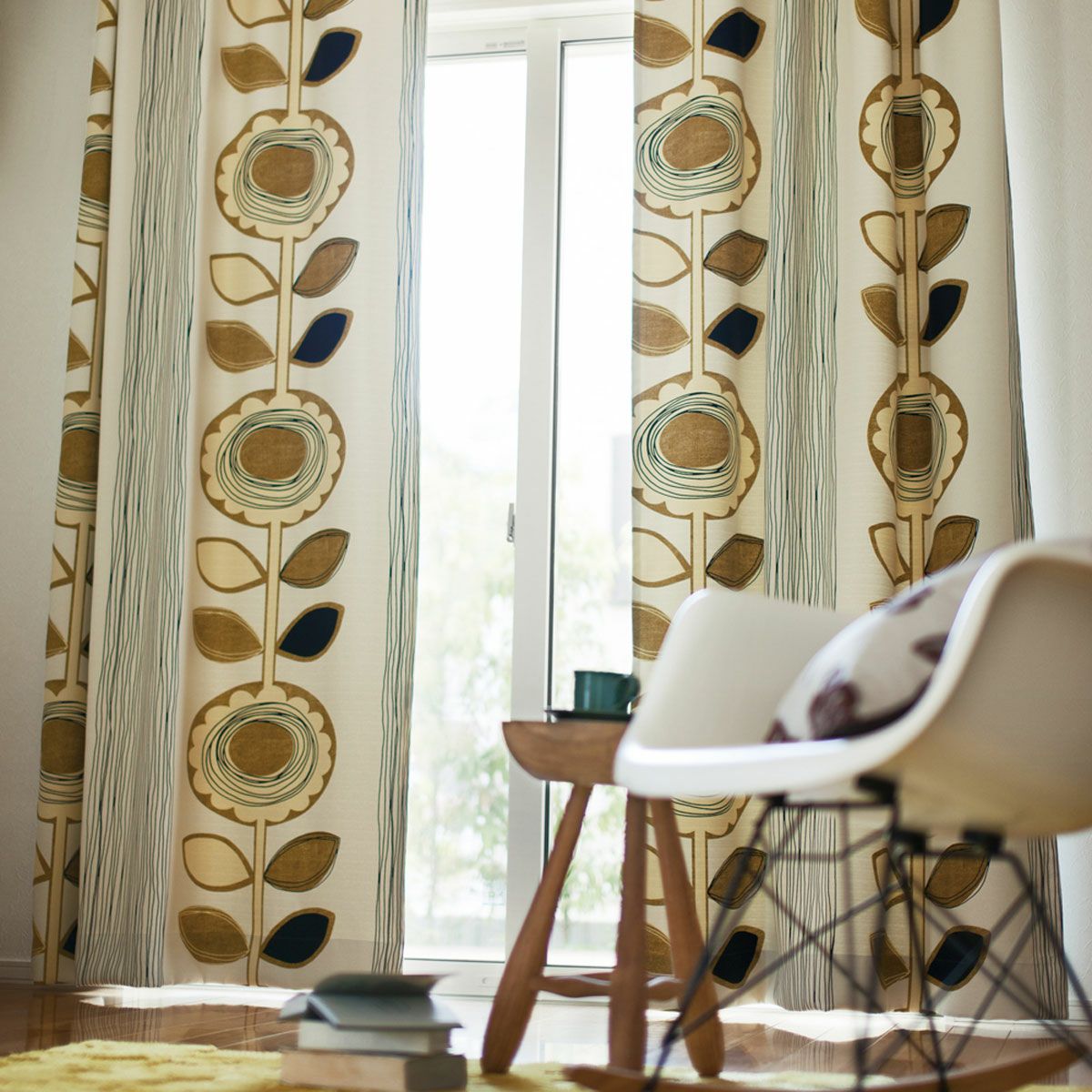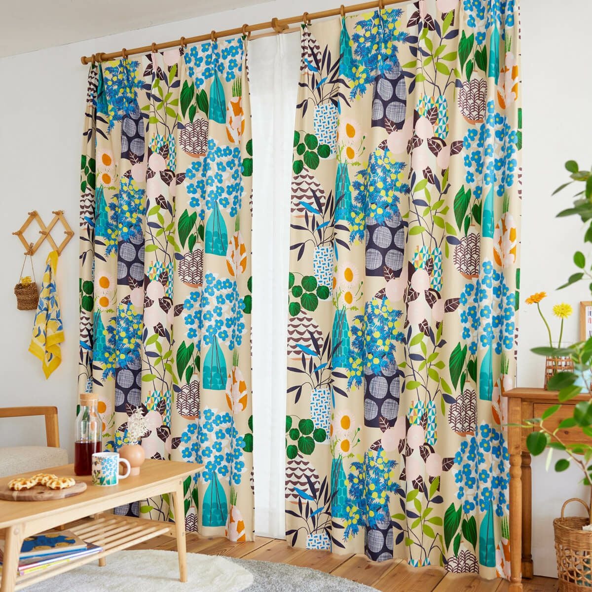 北欧テイストのラフな花柄が魅力の1・2級遮光カーテン