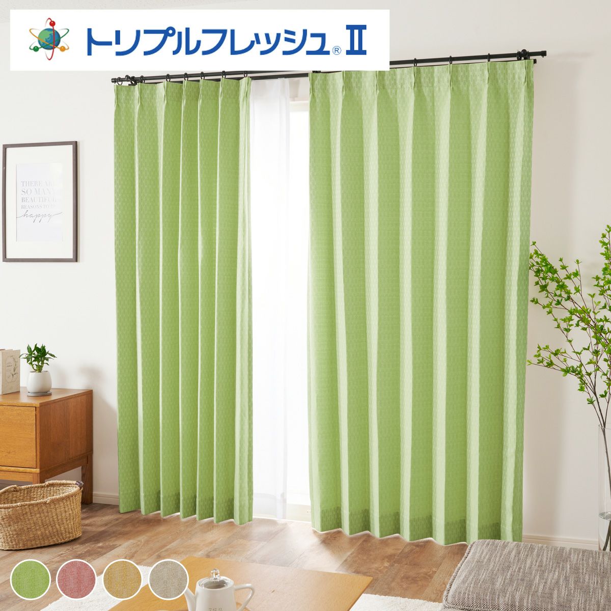 4色 ニュアンスカラーのナチュラル感のある織が特徴的なドレープカーテン