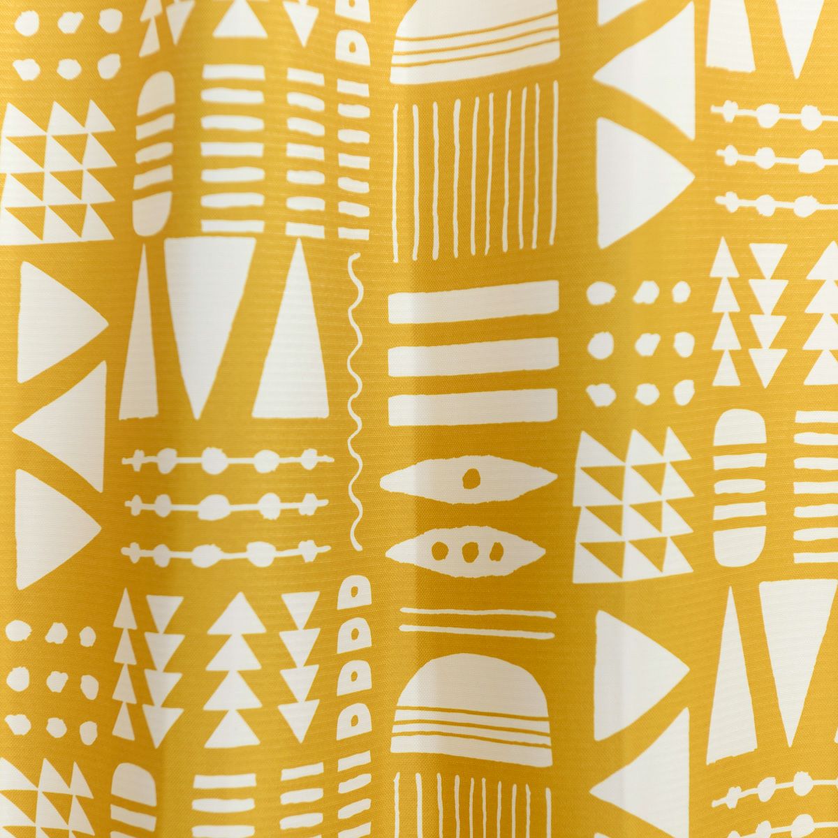 幾何柄のドレープカーテンはカーテンだけでおしゃれな空間に仕上がります。