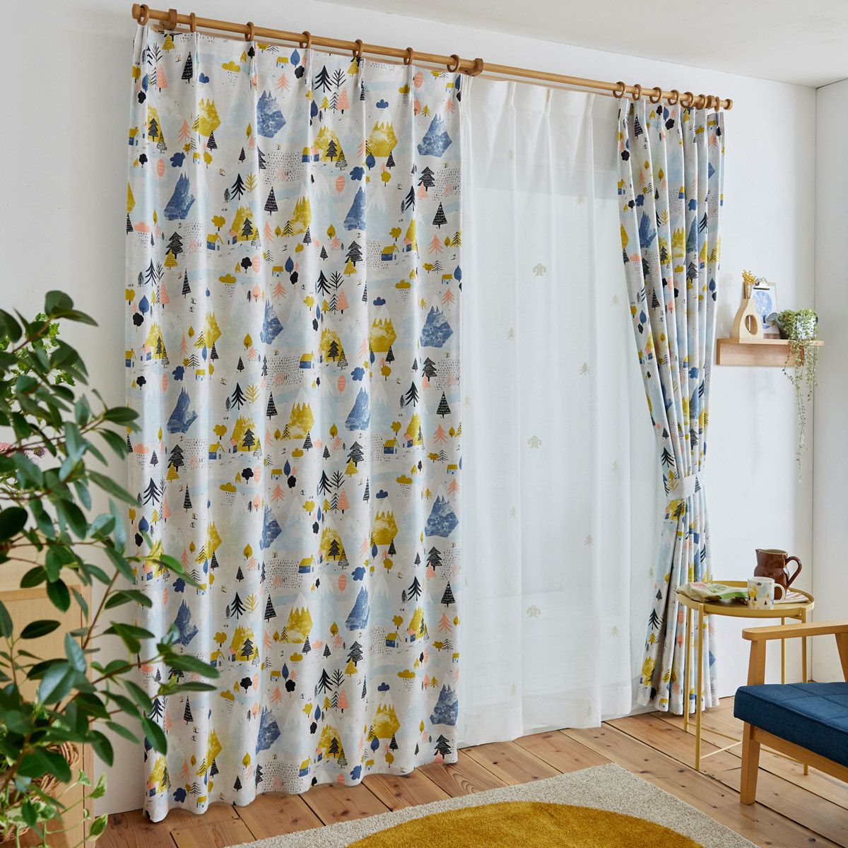北欧ナチュラルな花と動物のモチーフがおしゃれな1・2級遮光カーテン