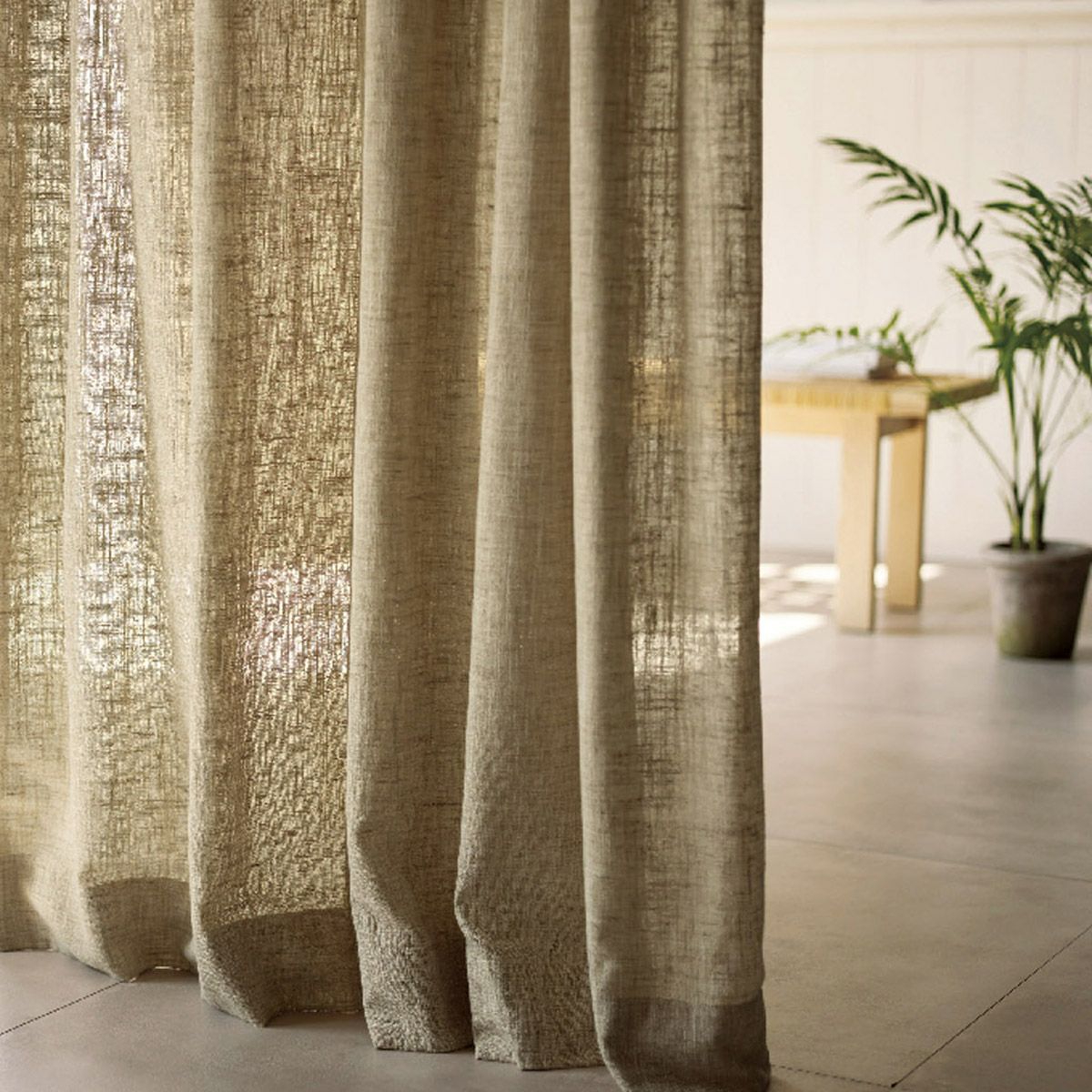 リネン85%ナチュラルなインテリアに合う大きな窓でも美しいシームレスレースカーテン