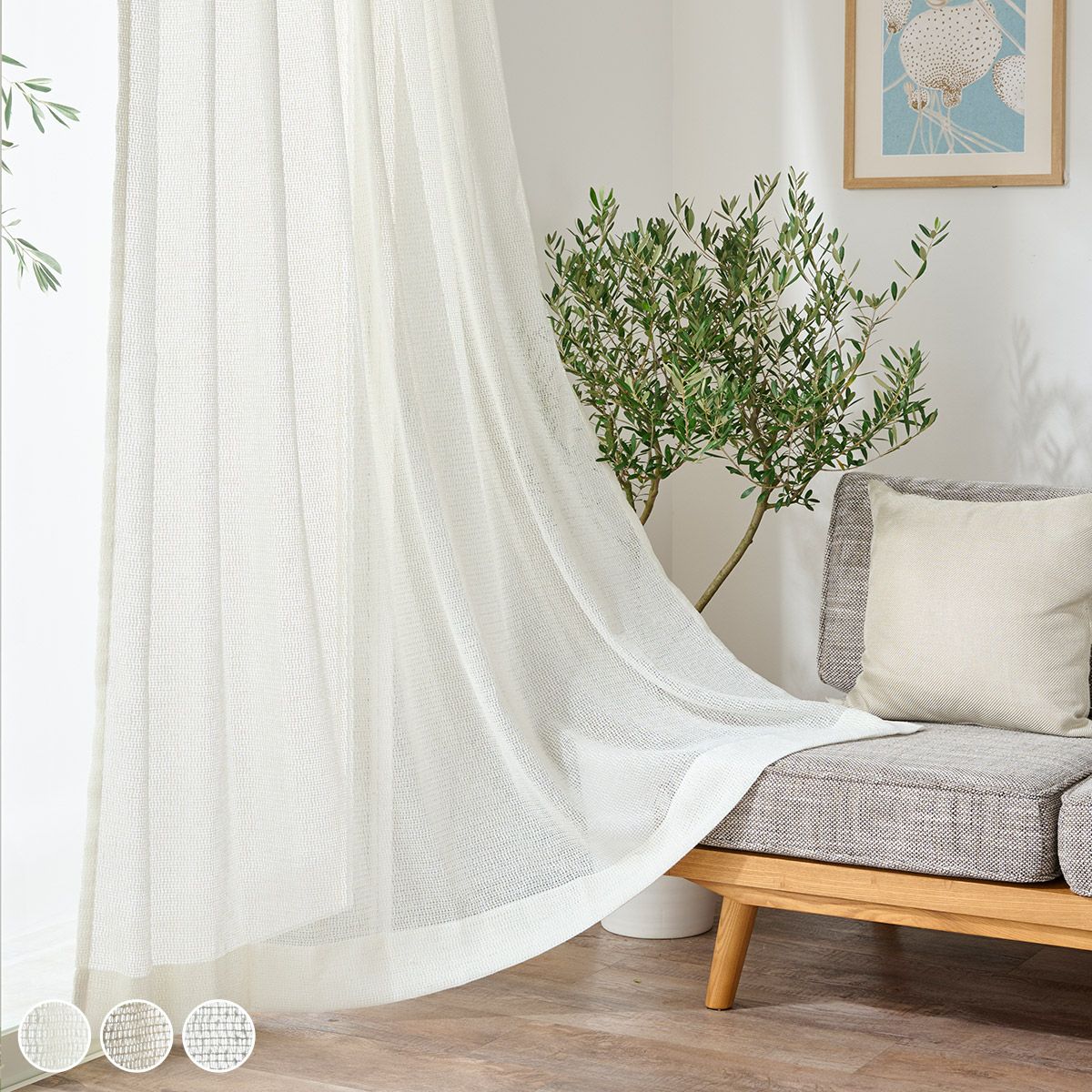 意匠糸をふんだんに使用して織り上げられているため、普通のレースカーテンよりもどっしりとして重みがあり、シンプルさの中に温かみも感じられます。