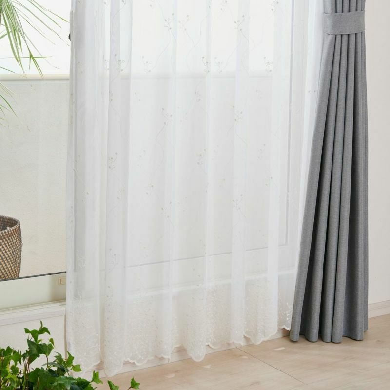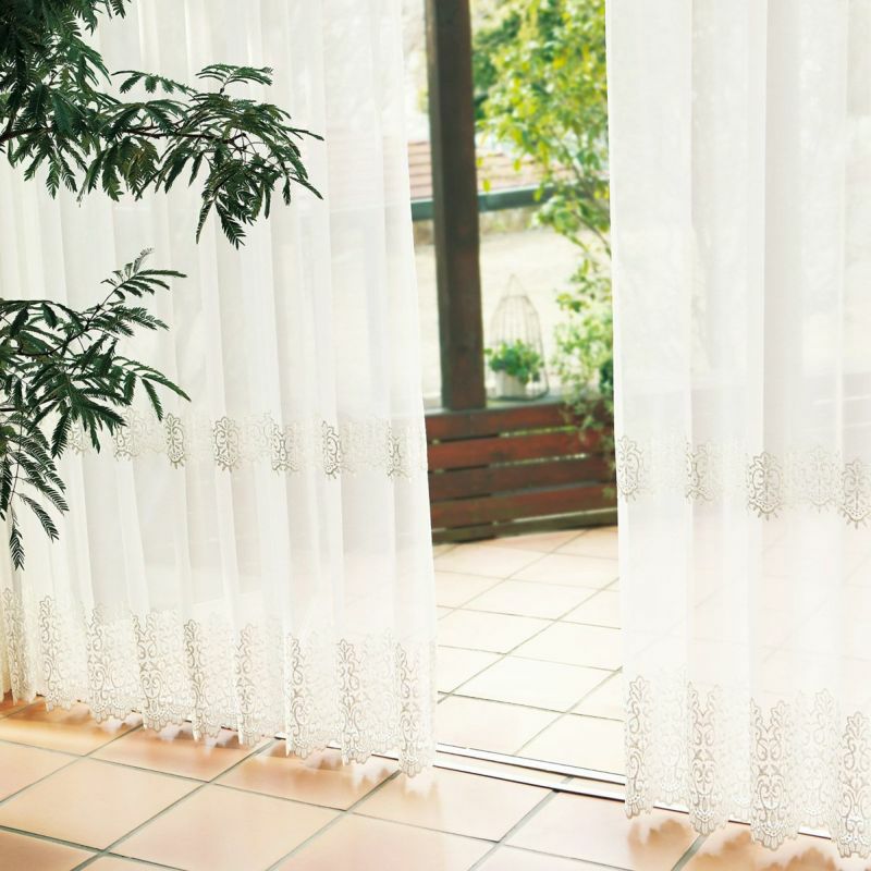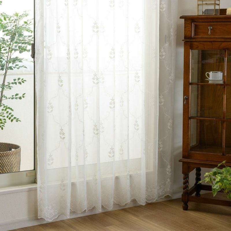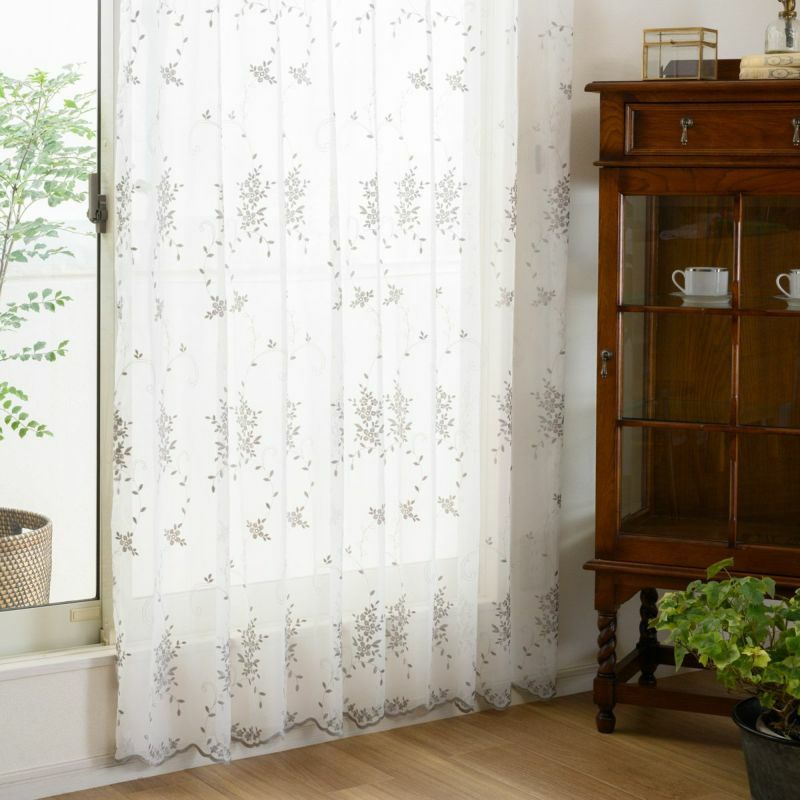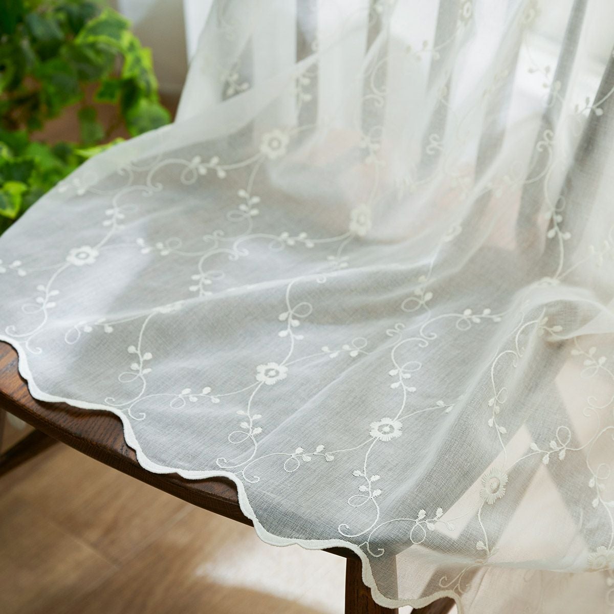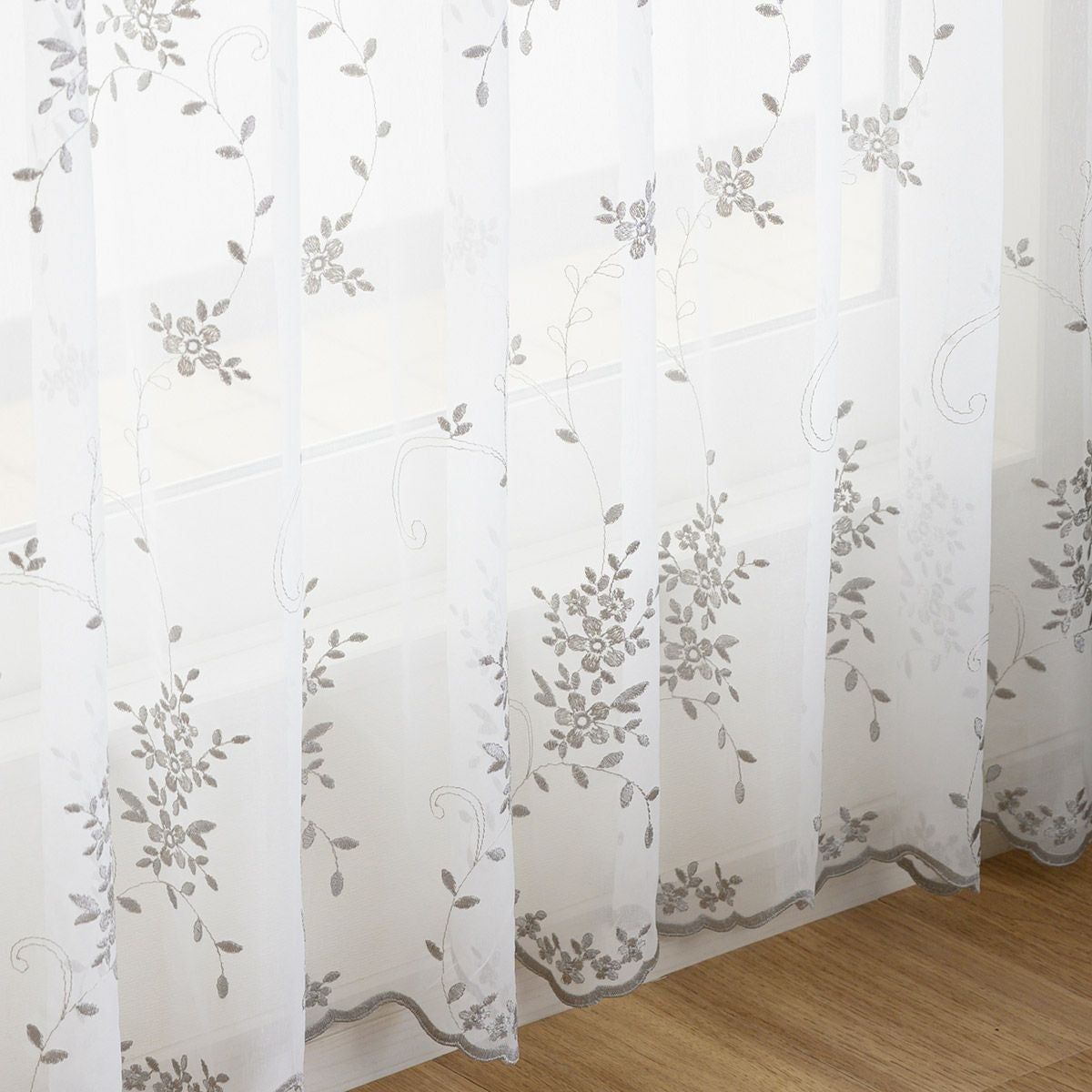 きらきらと咲き誇る草花の上品な刺繍が美しいボイルレースカーテン フィリス(L-1296)